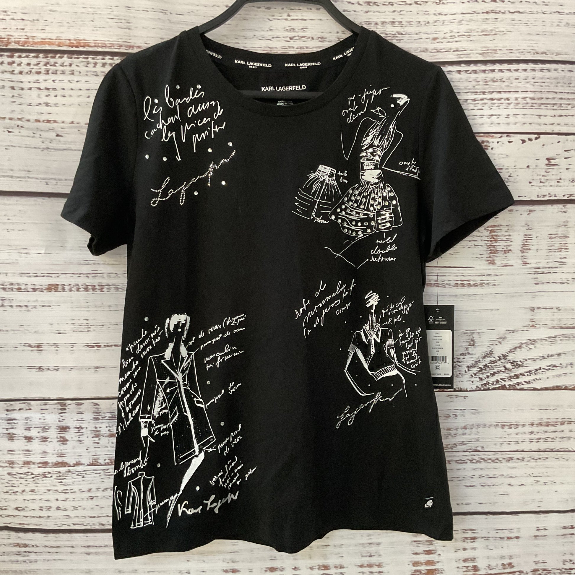 NWT KARL LAGERFELD Paris Women's Black Embellished Print T-Shirt- SZ S