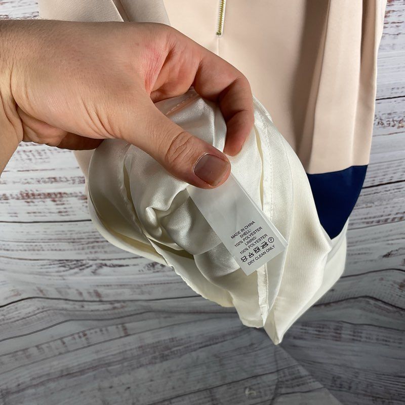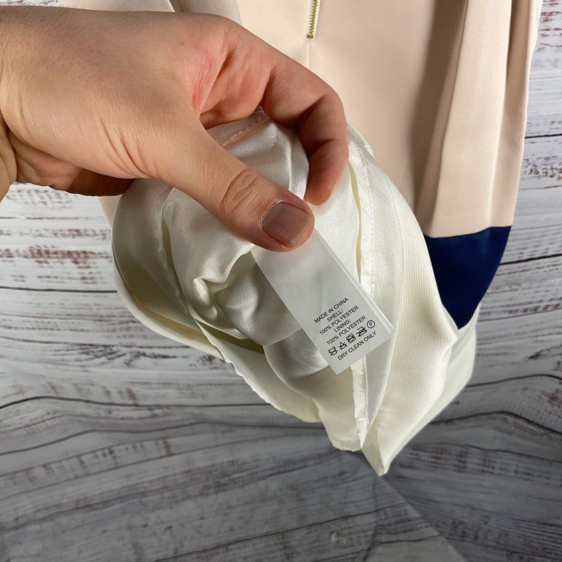 Color/Pattern: Cream, Black, & Navy Colorblock Sleeveless Bow