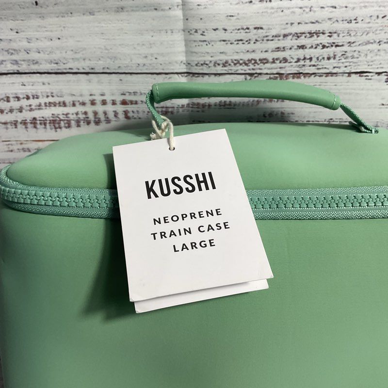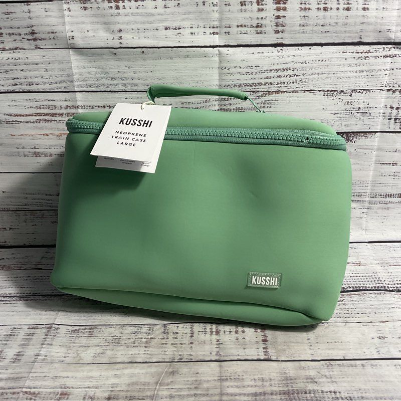 NWT Kusshi Green Neoprene Train Case Makeup Bag