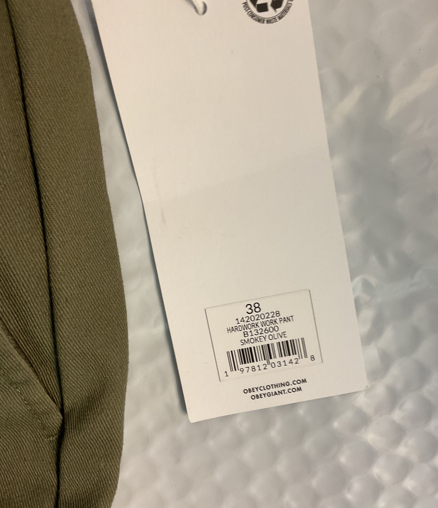 NWT Men's Obey Hardwork Chino Olive Pants Size 38