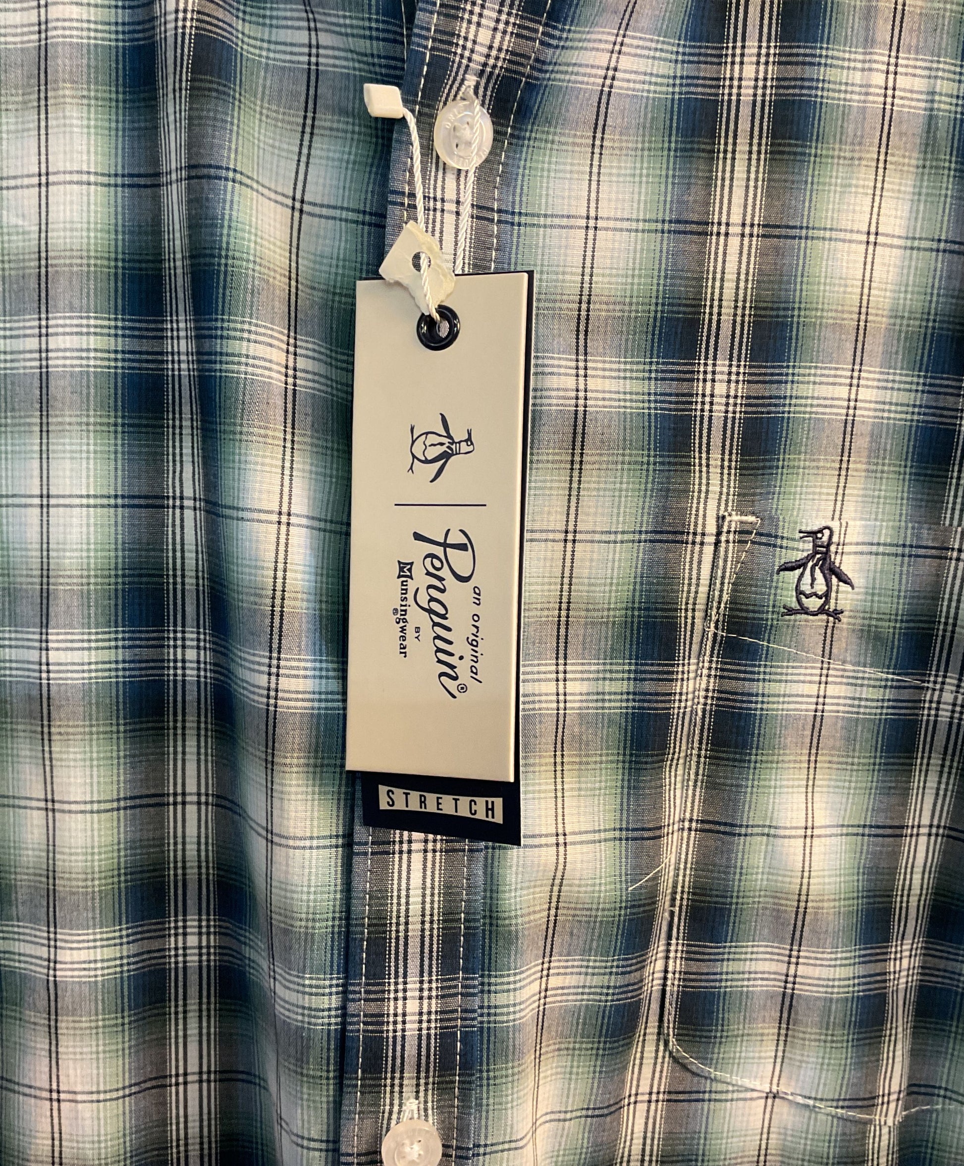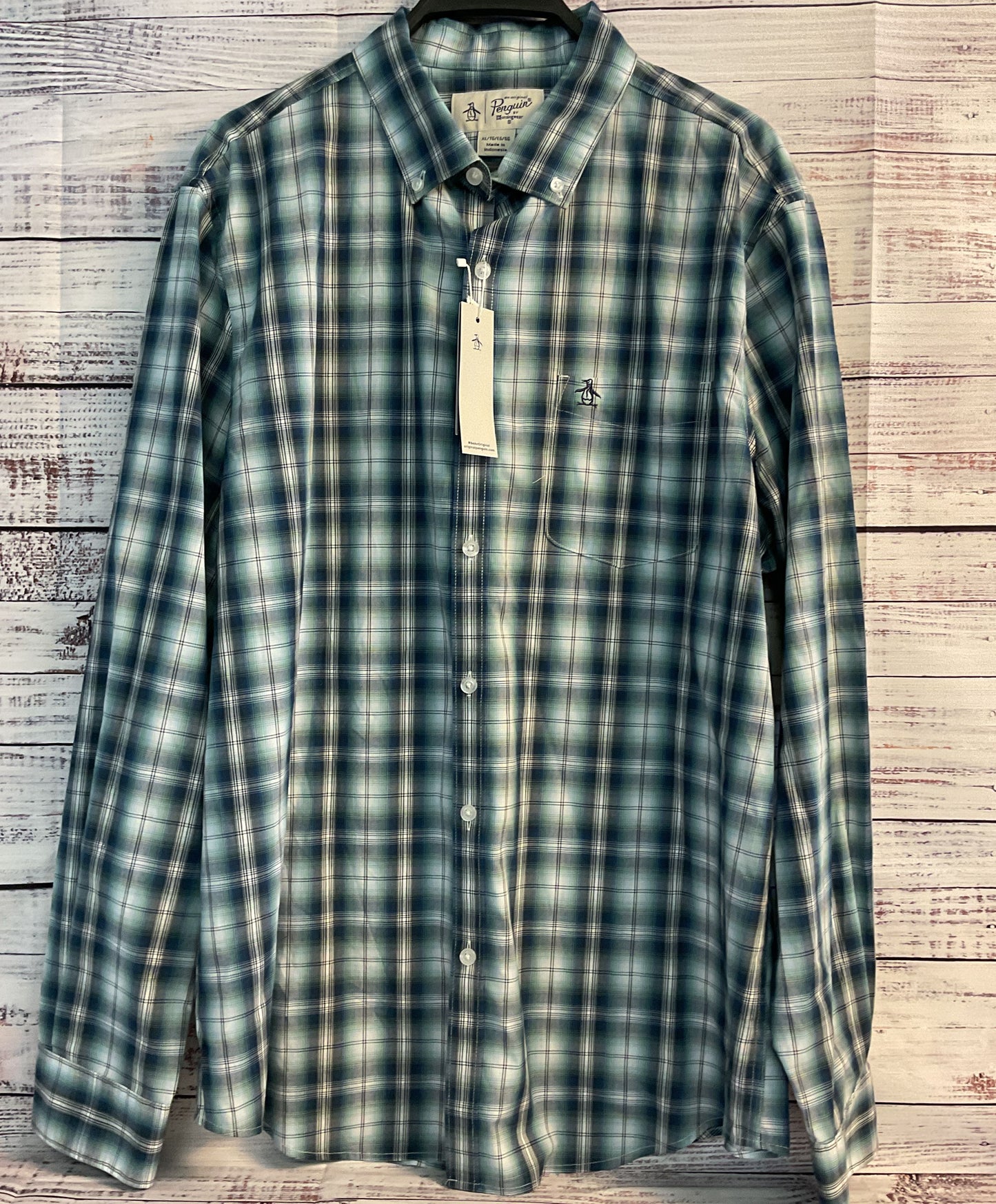 NWT Men's Penguin Blue Green Button Down Shirt Size XL