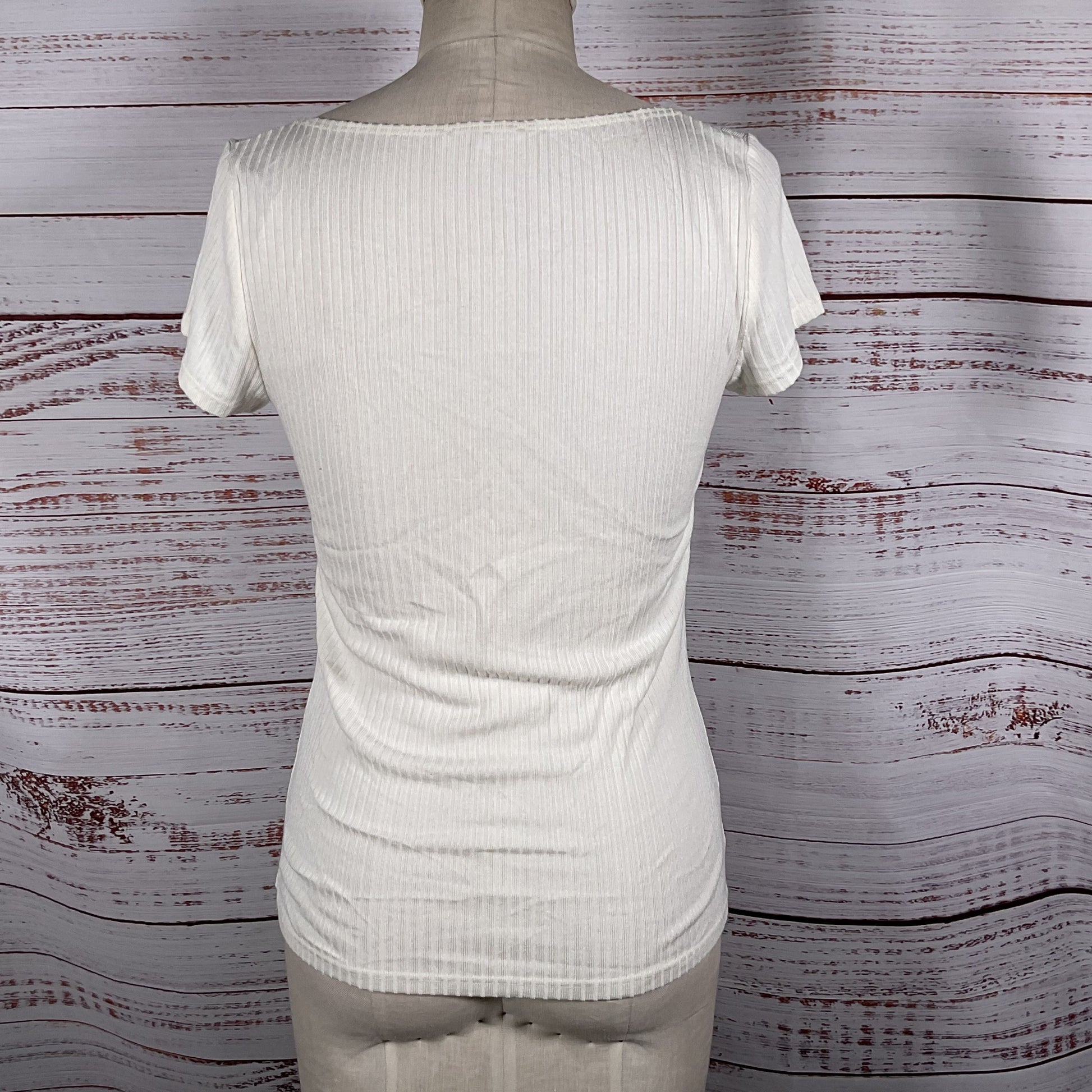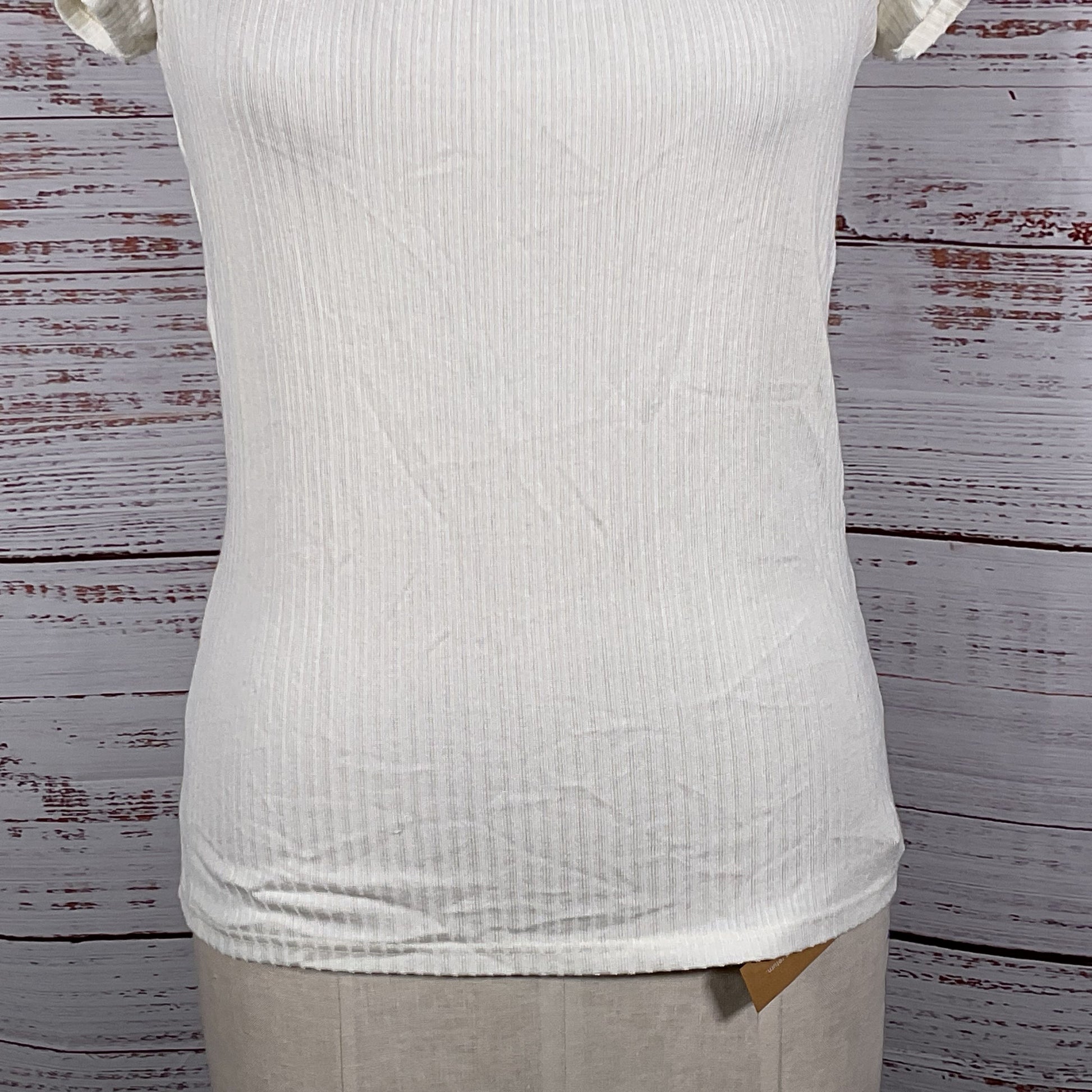NWT REFORMATION White Bardot Square Neck Ribbed Cap Sleeve Blouse- SZ L