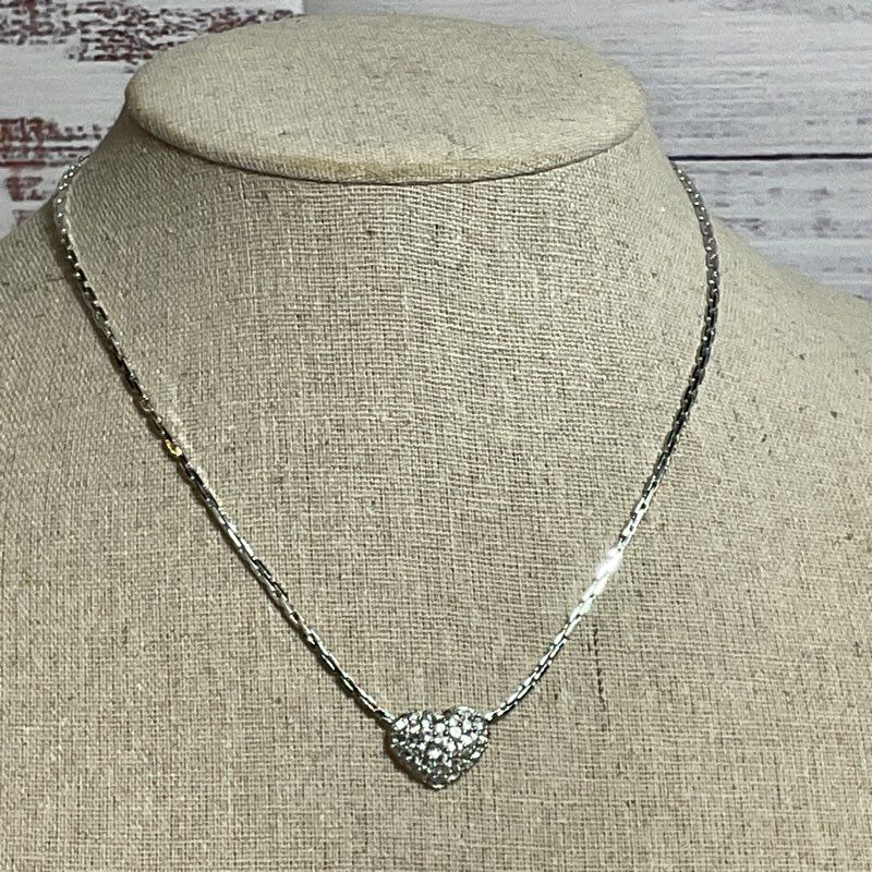 NWT SWAROVSKI Silver Tone Pave Heart 16" Necklace