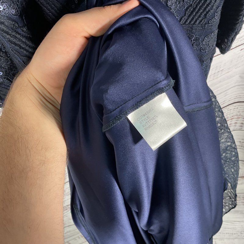 Color/Pattern: Silana Off Shoulder Navy Blue Sequin Gown