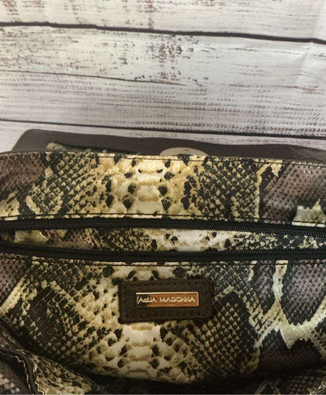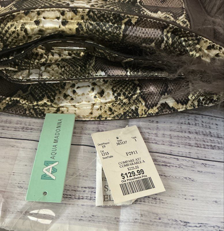 NWT Women's Aqua Madonna Brown Faux Fur and Leather Handbag