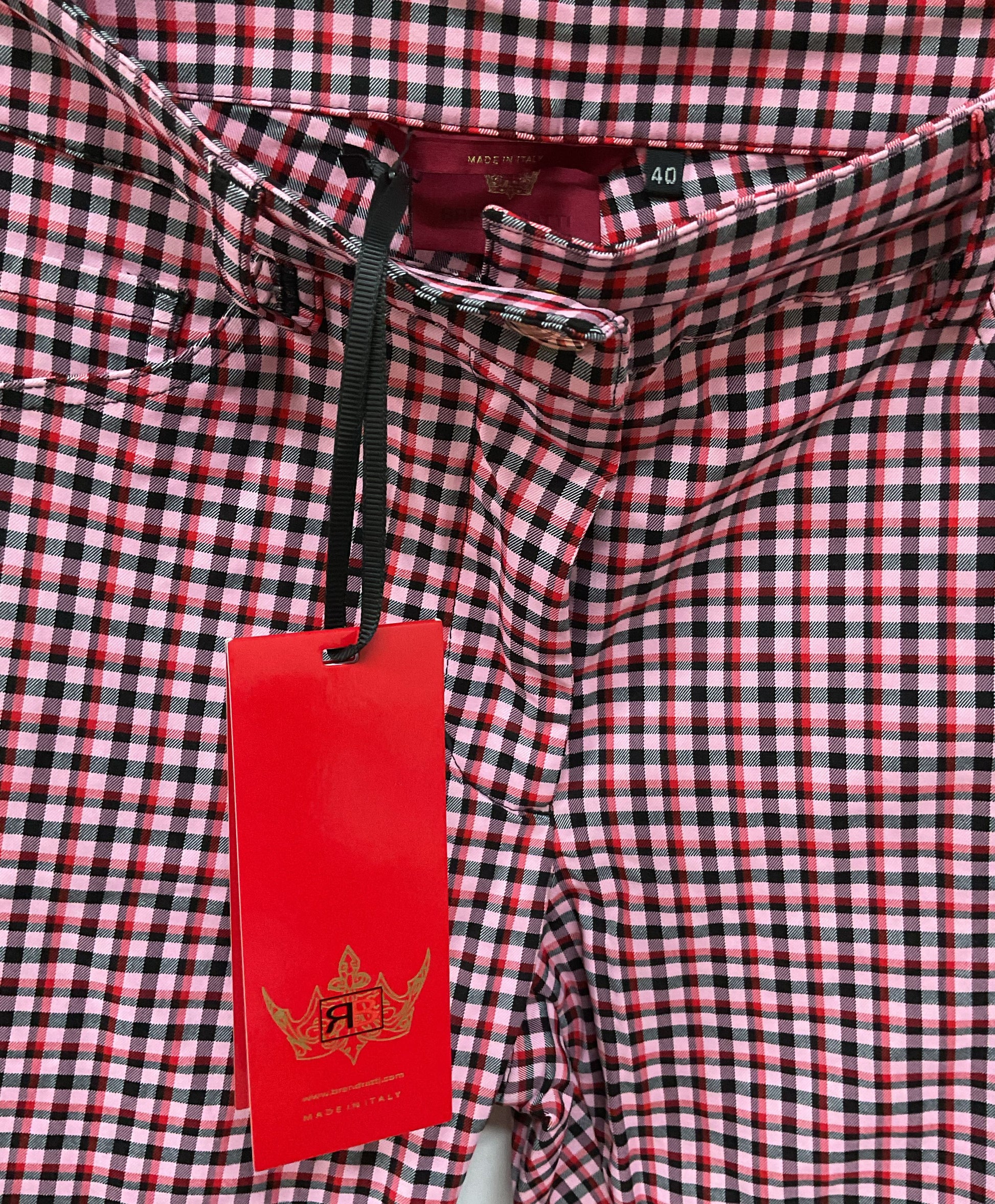 NWT Women's Brendratti Elina Checker Luxury Golf Pant Size 40 Pink & Black