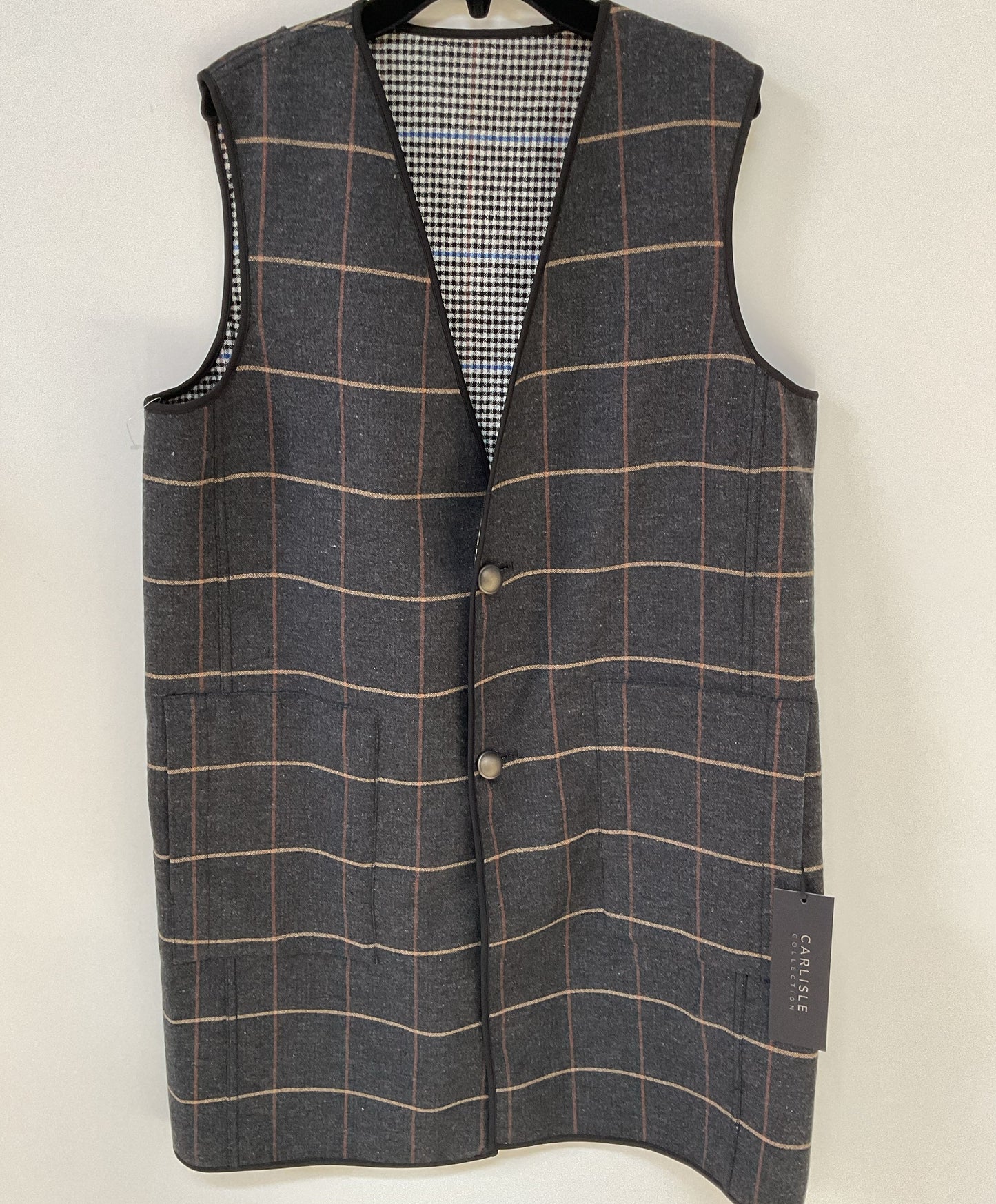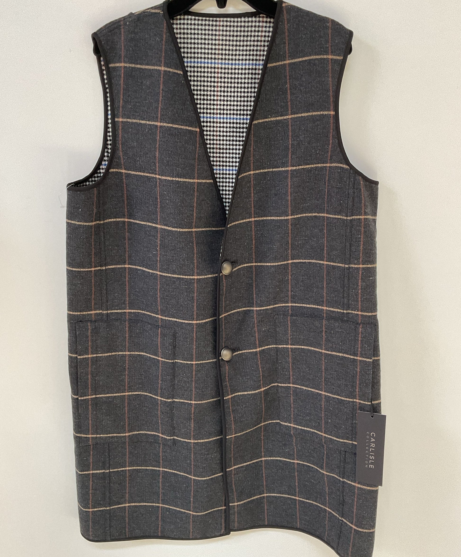 NWT Women's Carlisle Gray Plaid/Houndstooth Reversible Vest Dress Size 10