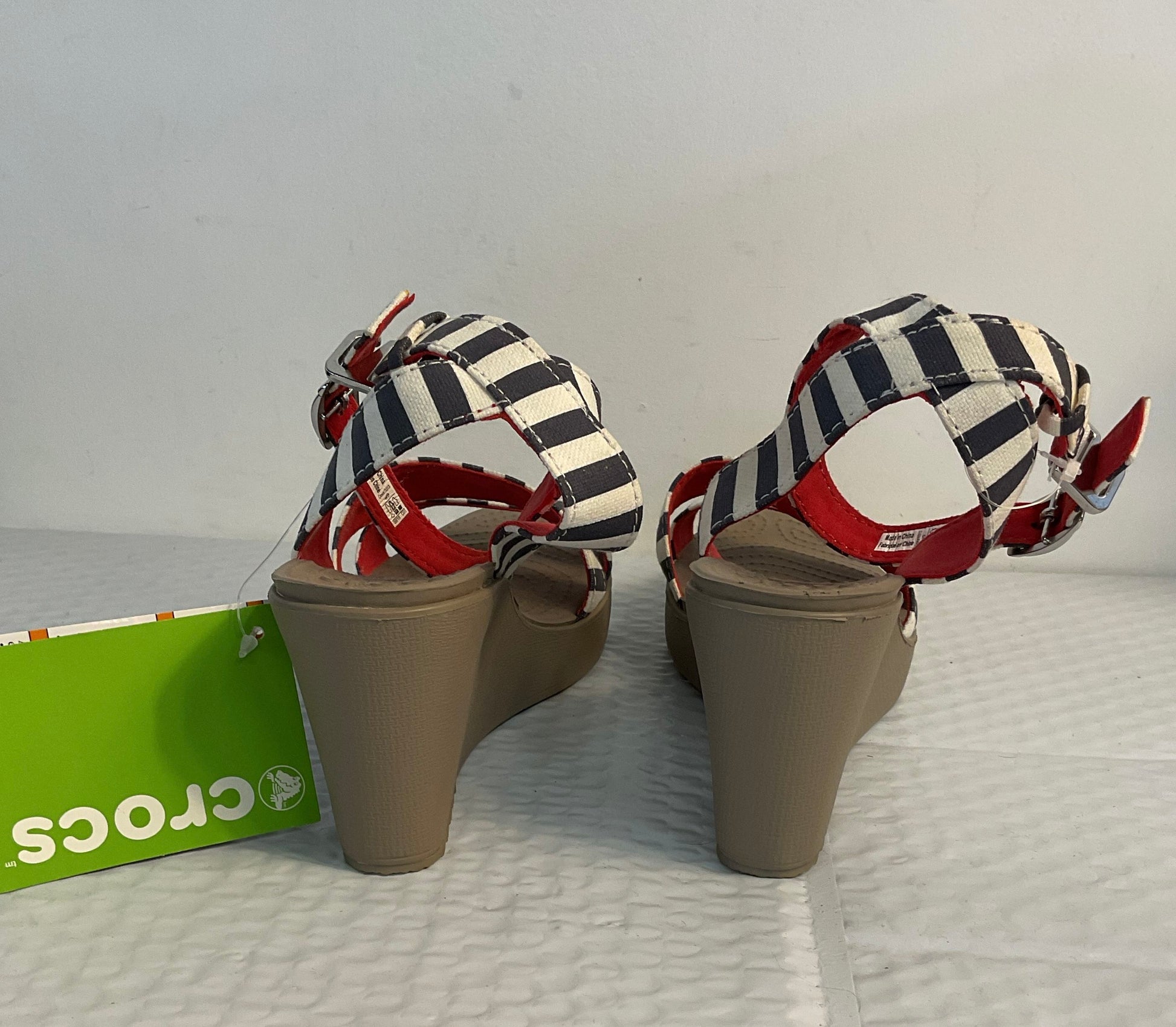 NWT Women's Crocs Leigh Wedge Striped Size 9