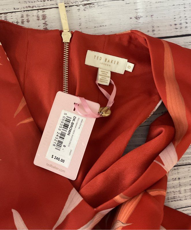 NWT Women's Ted Baker Floral Print Dress Size 0/XS Retail $245