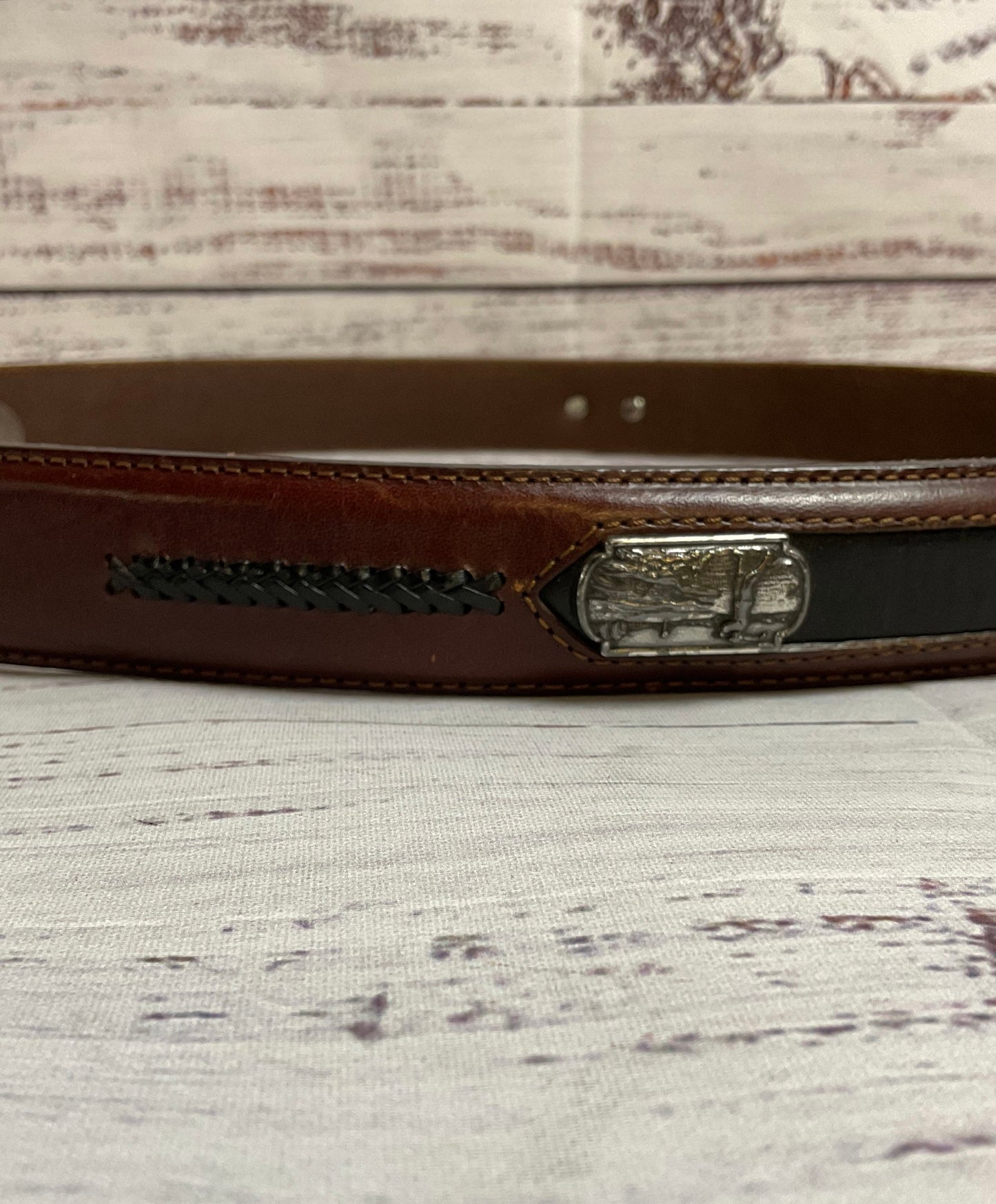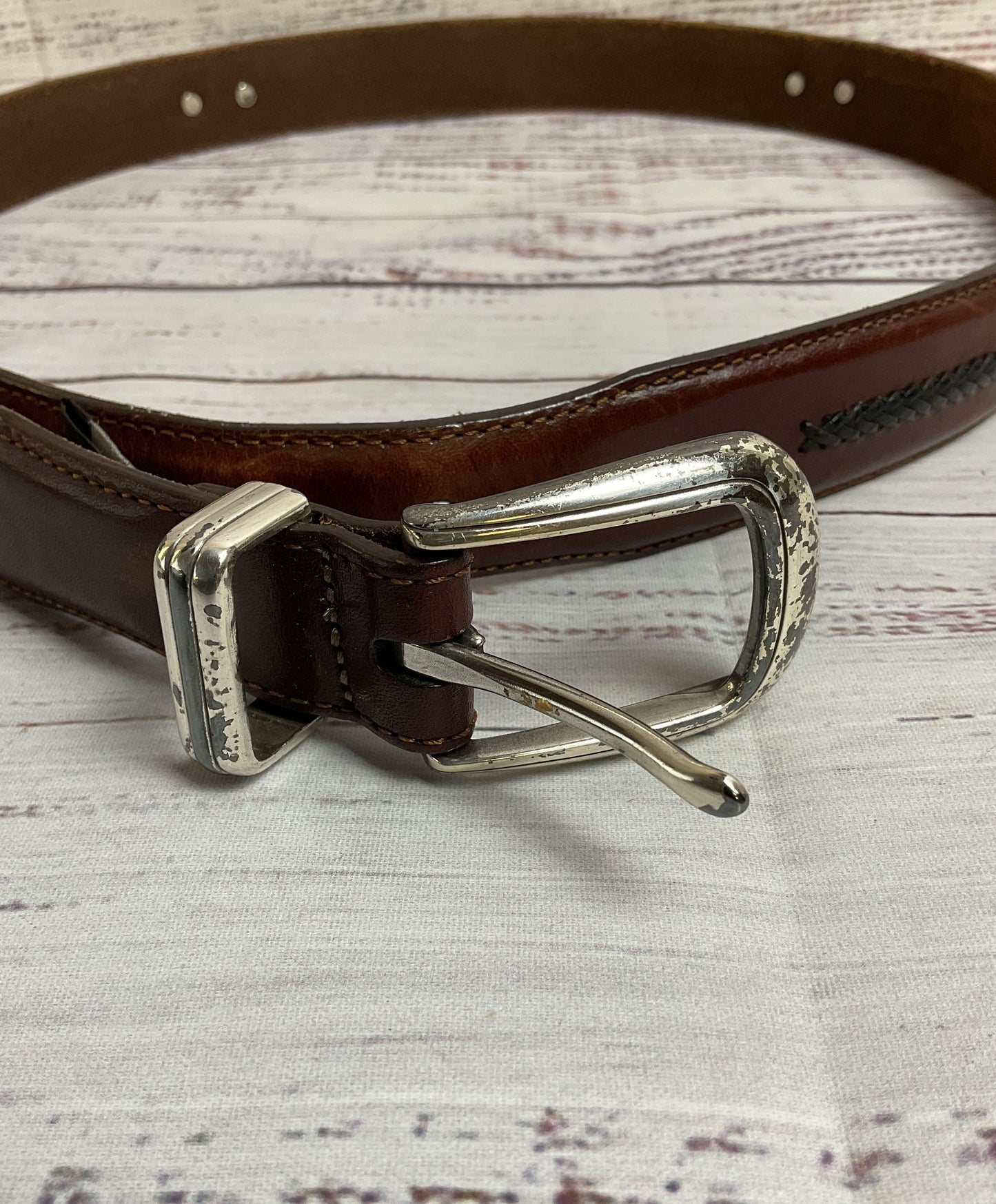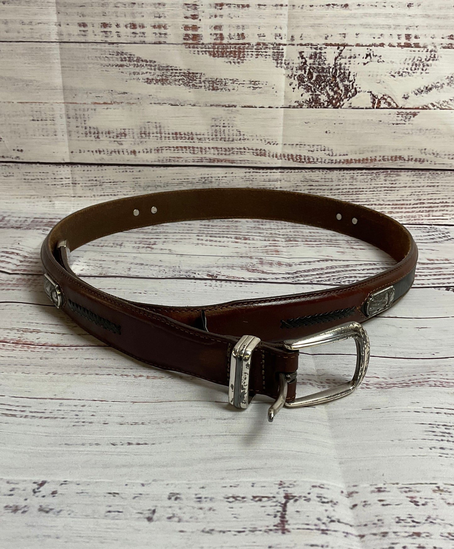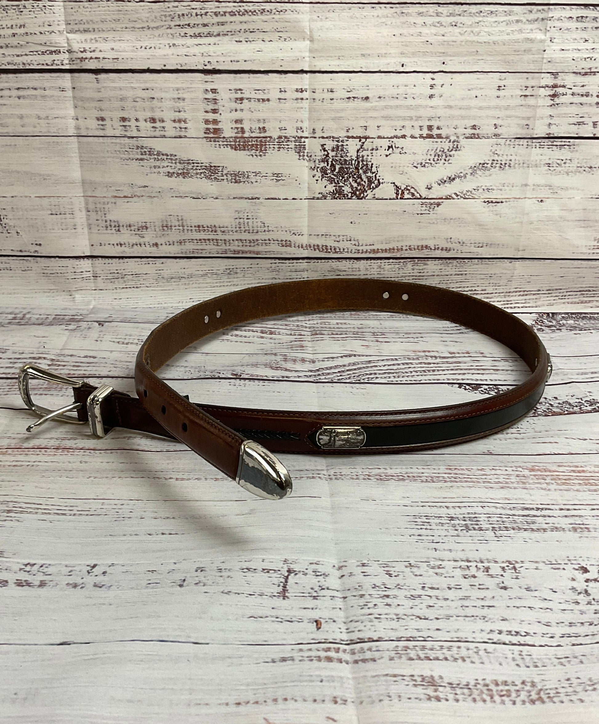 Onyx by Brighton Brown Men's Golf Belt with Silver and Black Details - Size 38