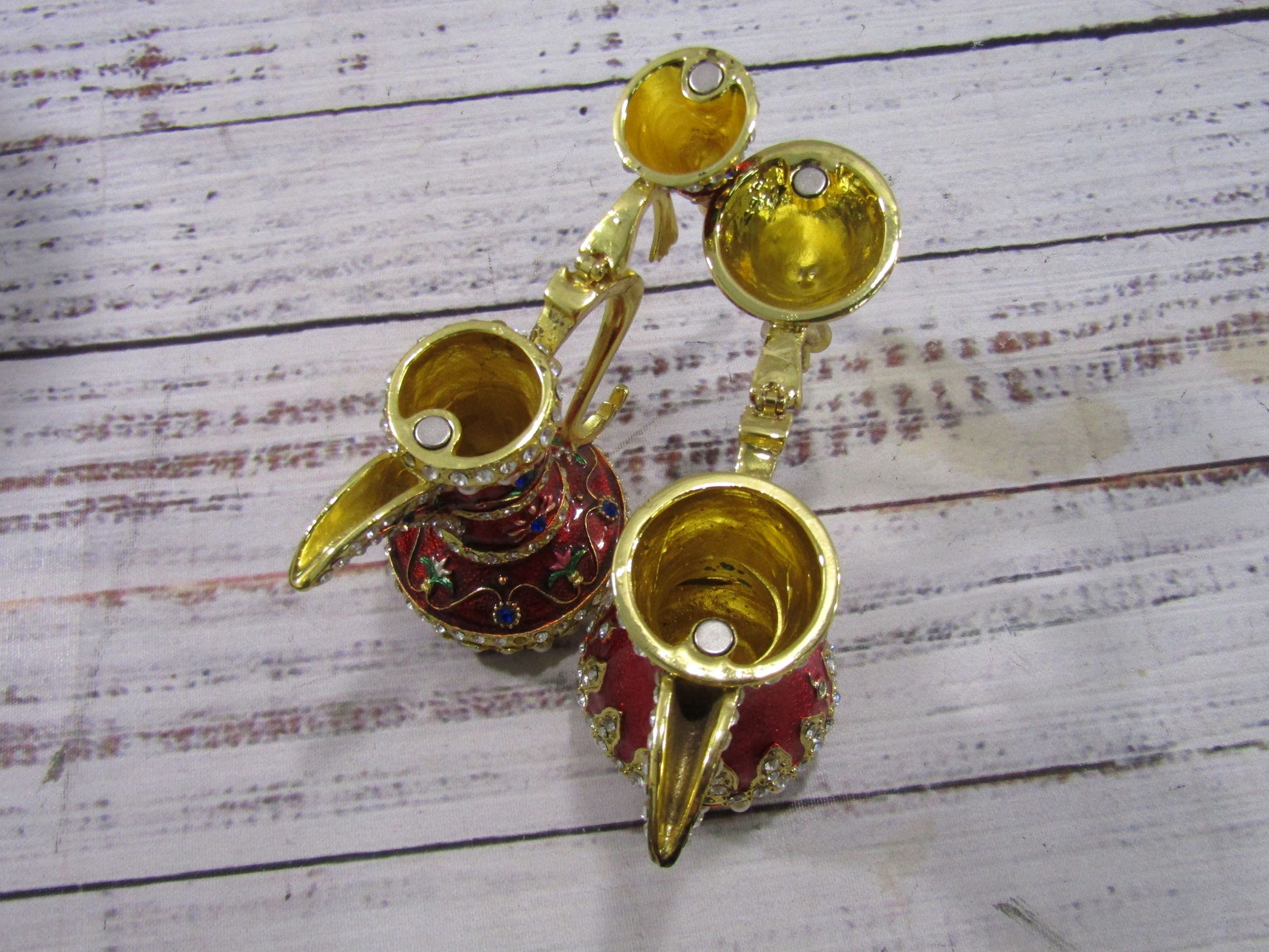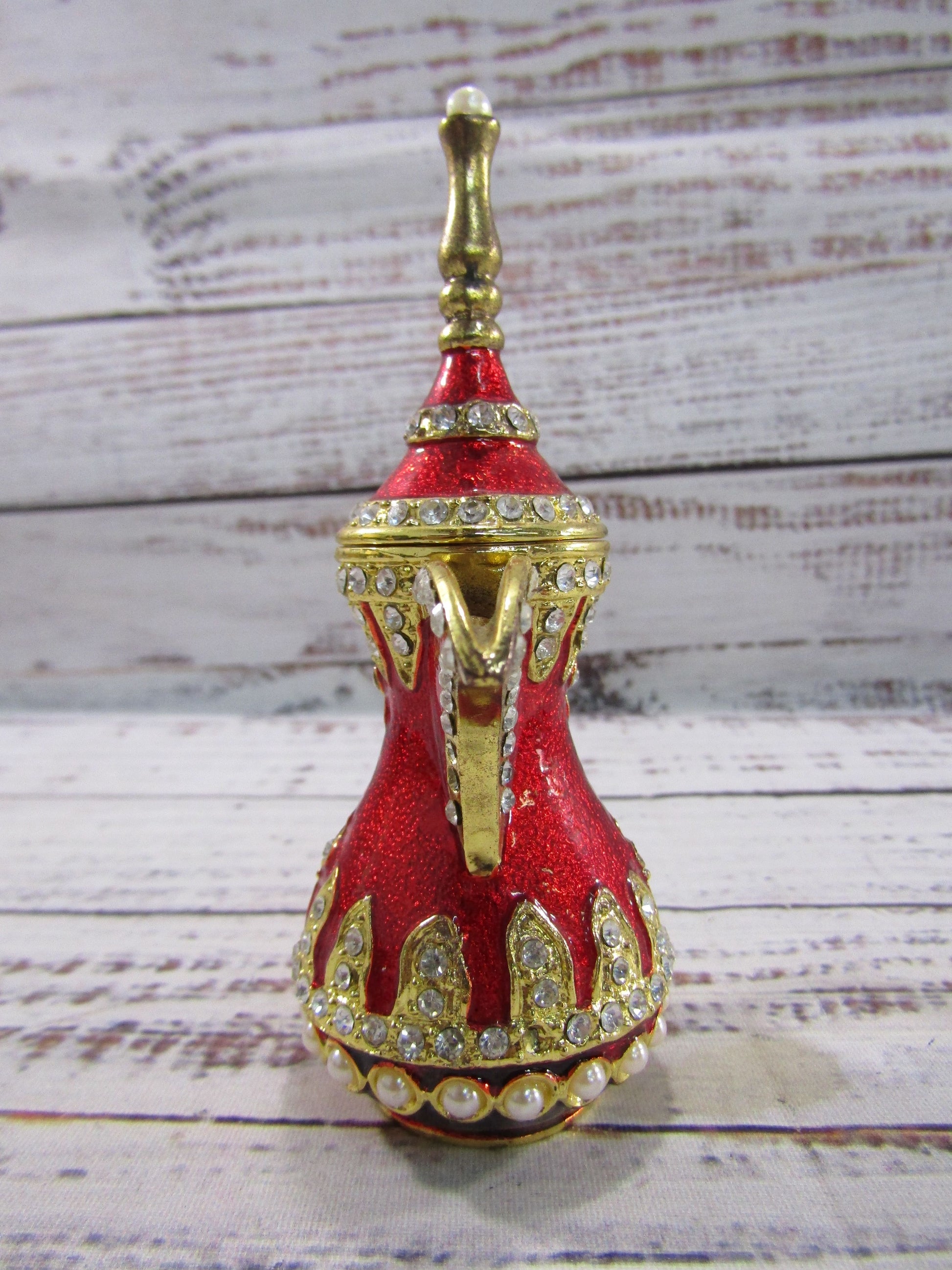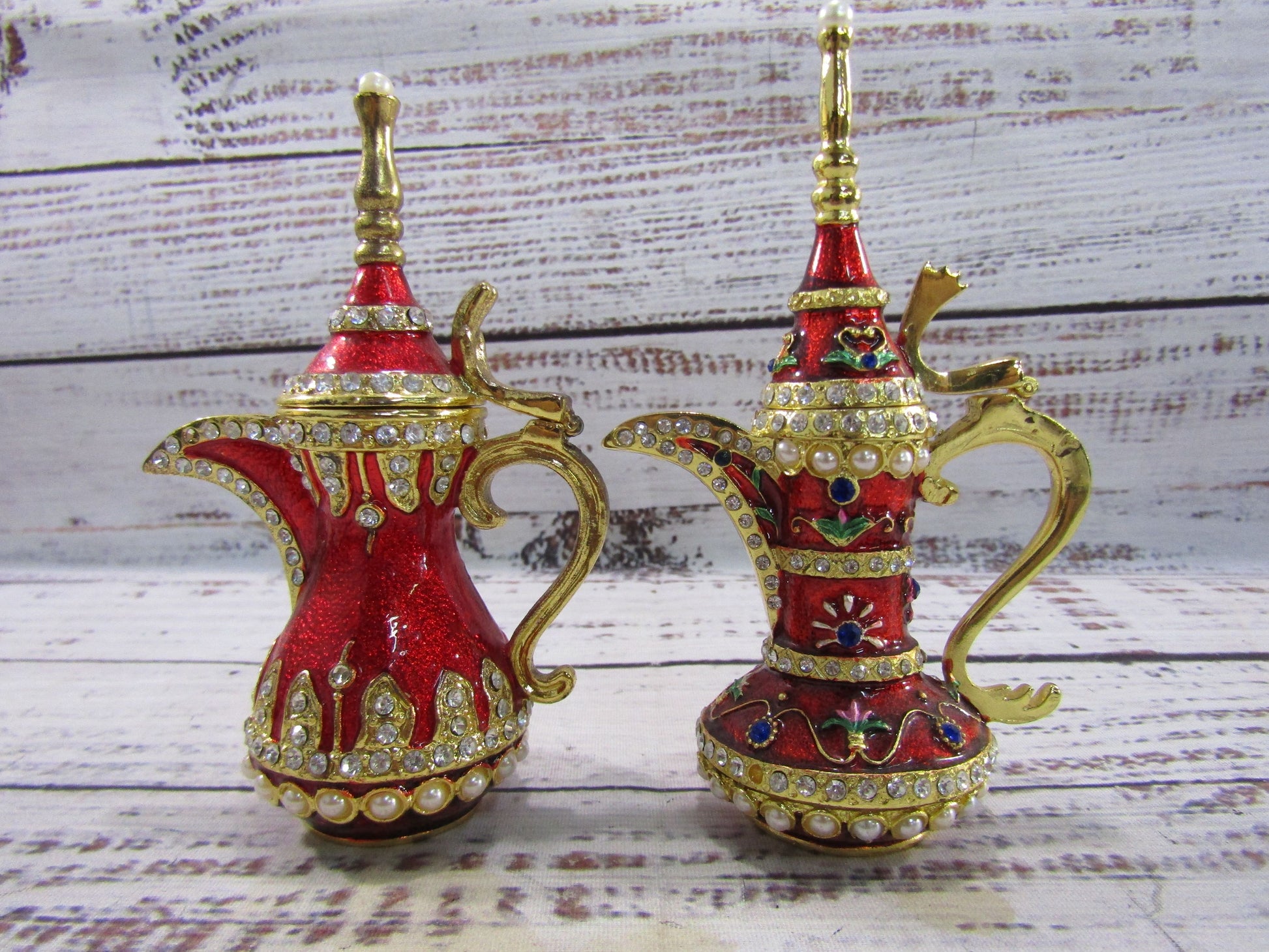 Ornate Gold Plated Red Enamel Dallah Ibrik Trinket Box Set of 2