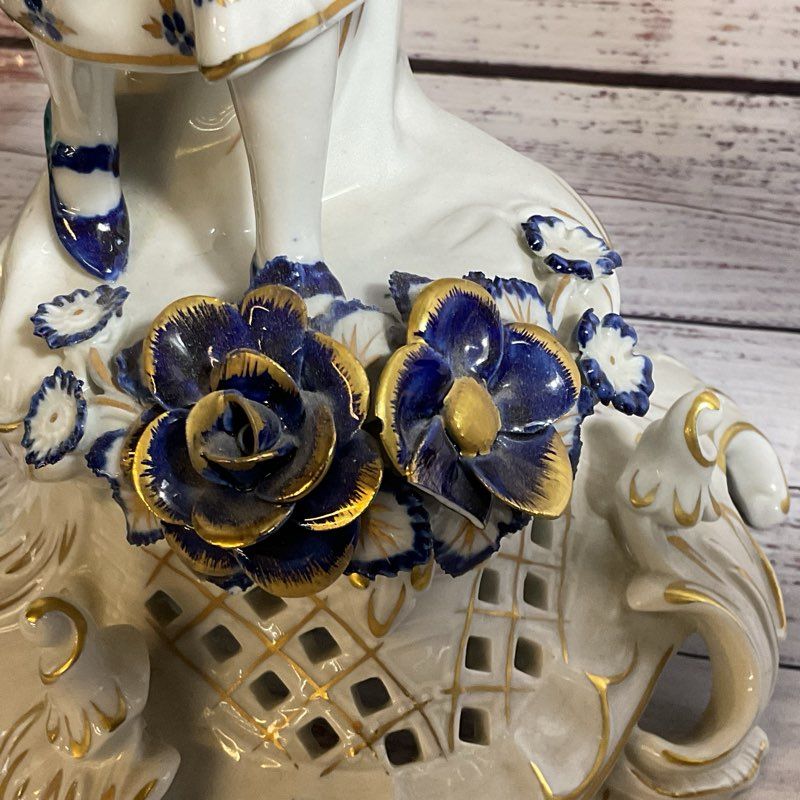Pair ANTQ. 1817 ECHT KOBALT Blue/White Gold Gilt Porcelain Victorian Candelabras