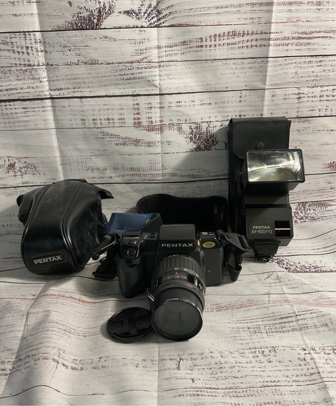 Pentax SF10 35mm Film Camera 35-135mm Lens & Pentax AF400FTZ Auto Flash