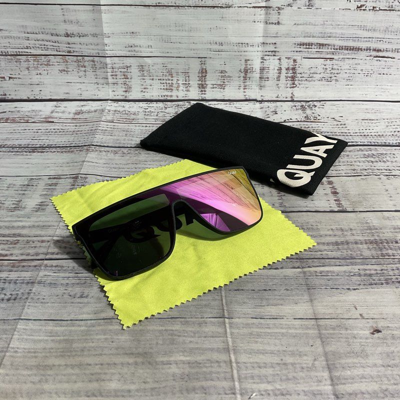 QUAY Nightfall 1212 Black Polarized Lens Shield Sunglasses Sunglasses w/ Case