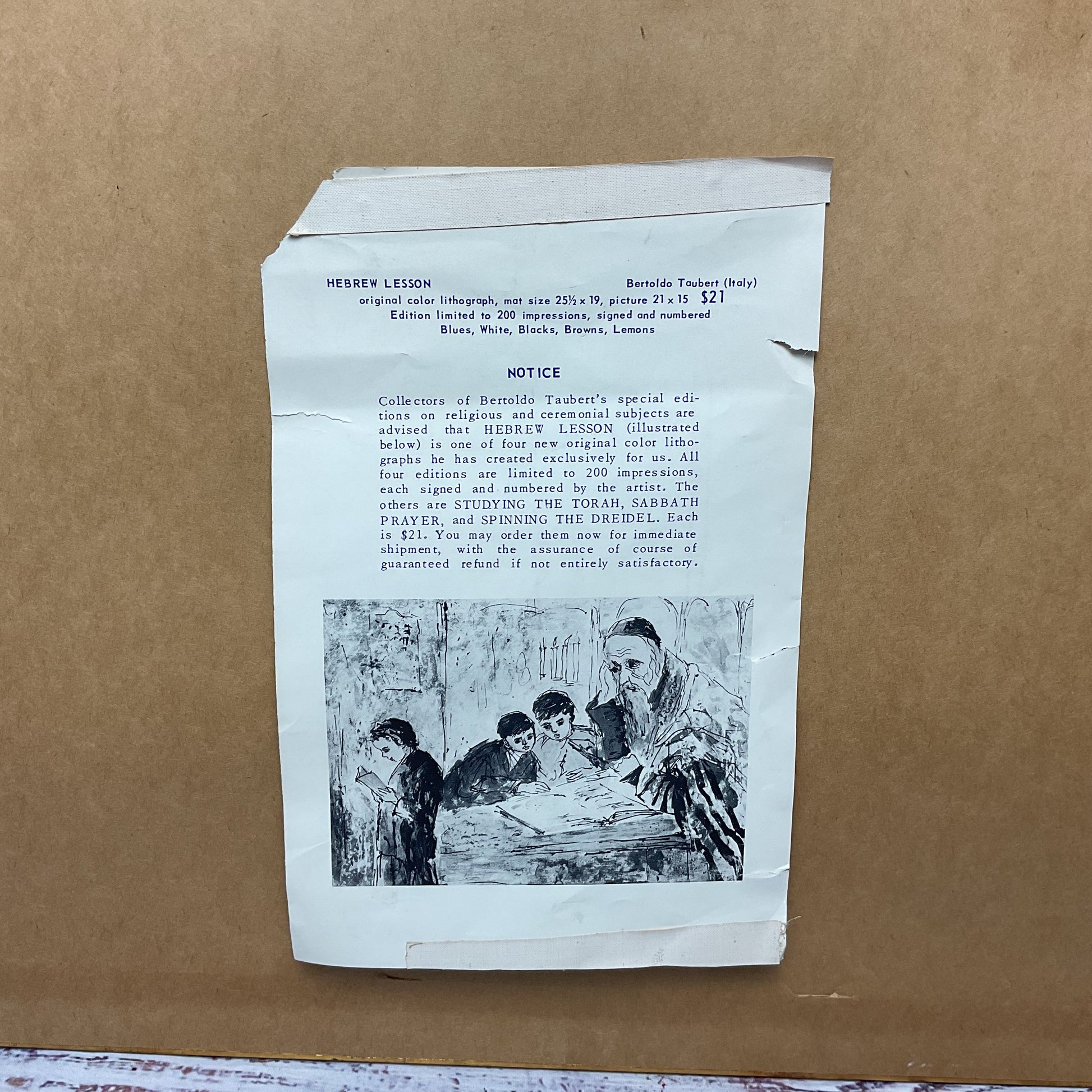 Description: Rabbis Teach Boy Reading The Torah Scroll Judaica Print by Bertoldo Taubert Signed.