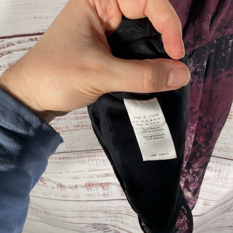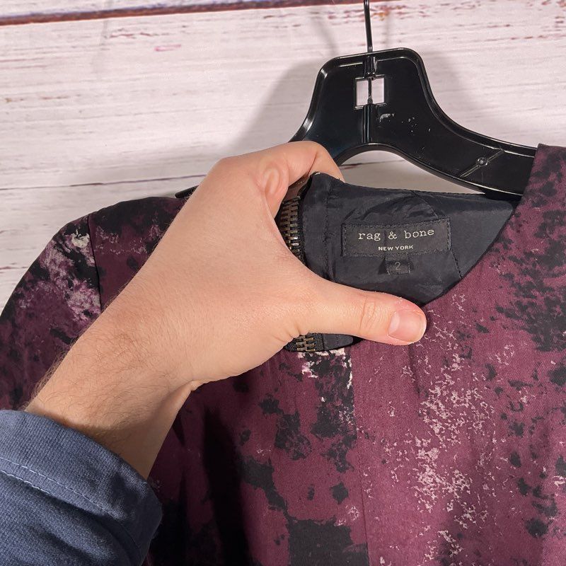 Rag & Bone Leonard Purple Abstract Print Silk Short Sleeve Mini Dress Size 2