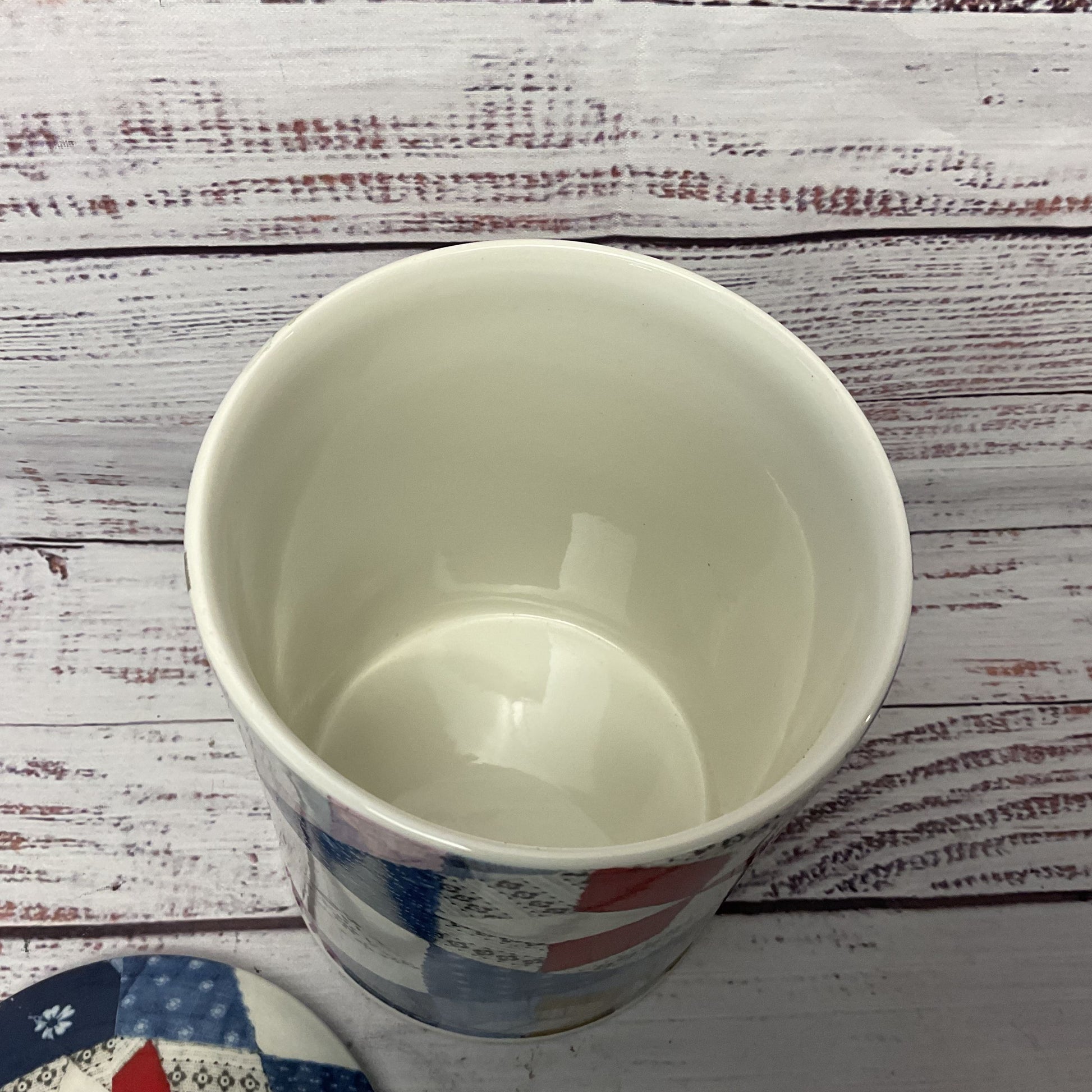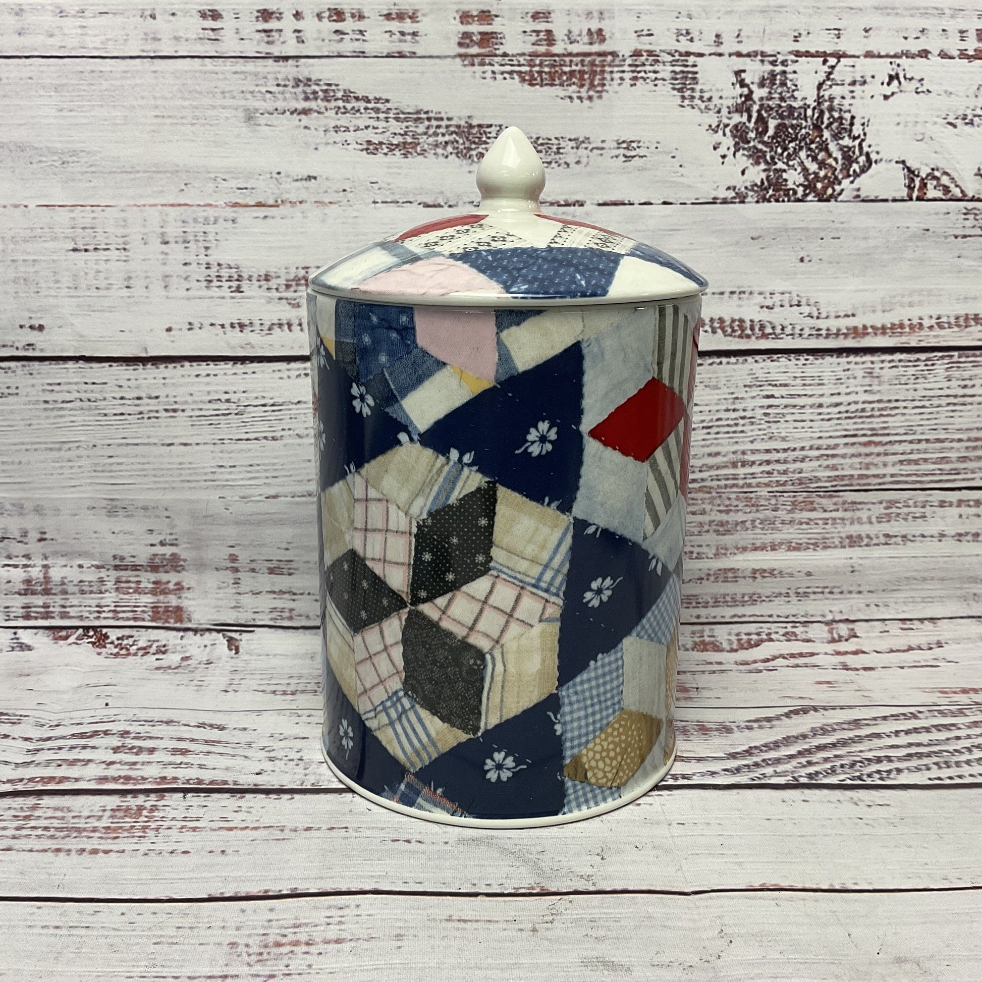 Ralph Lauren Wedgewood Patchwork Jar Canister 4.5" Diameter 8" Tall