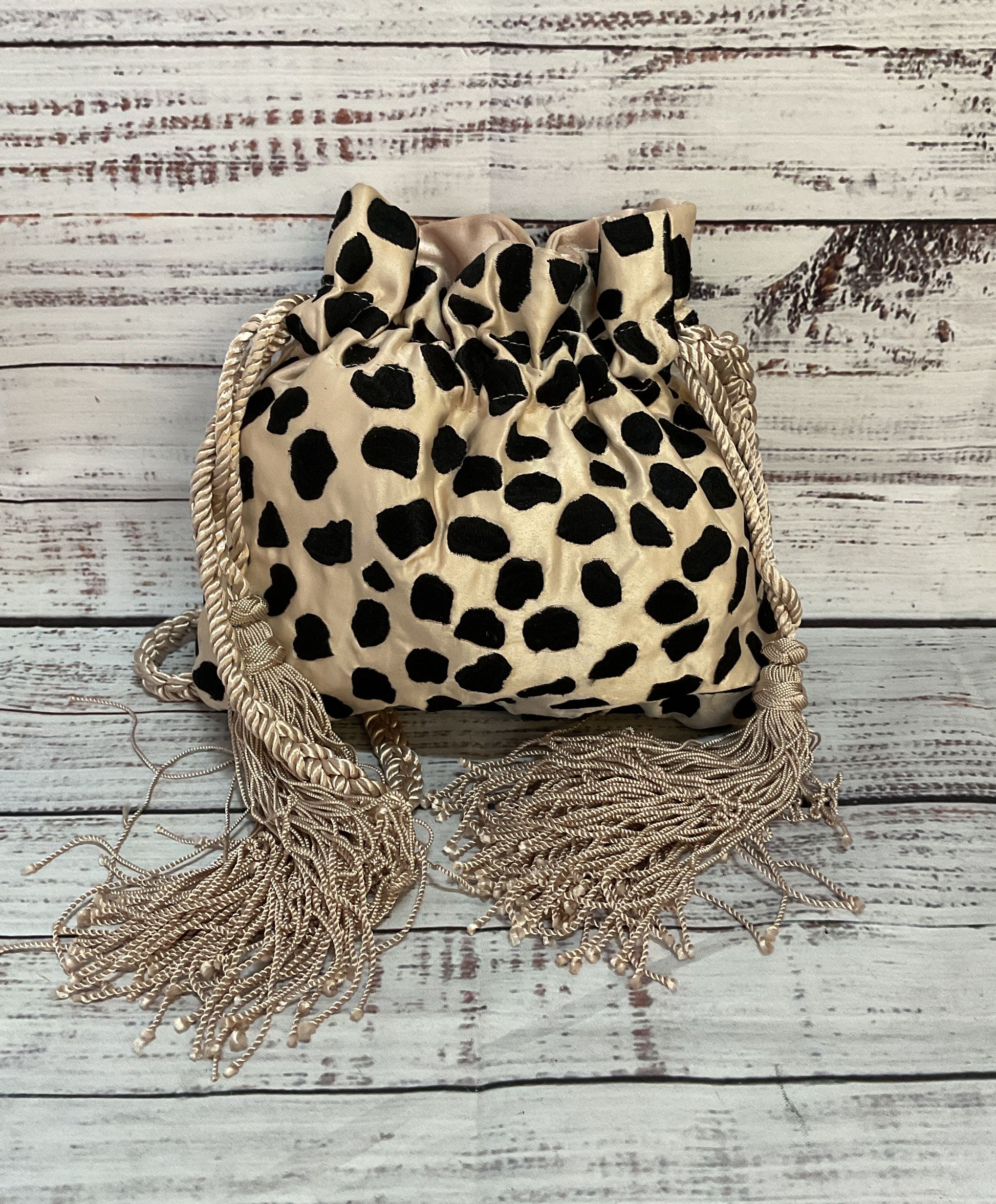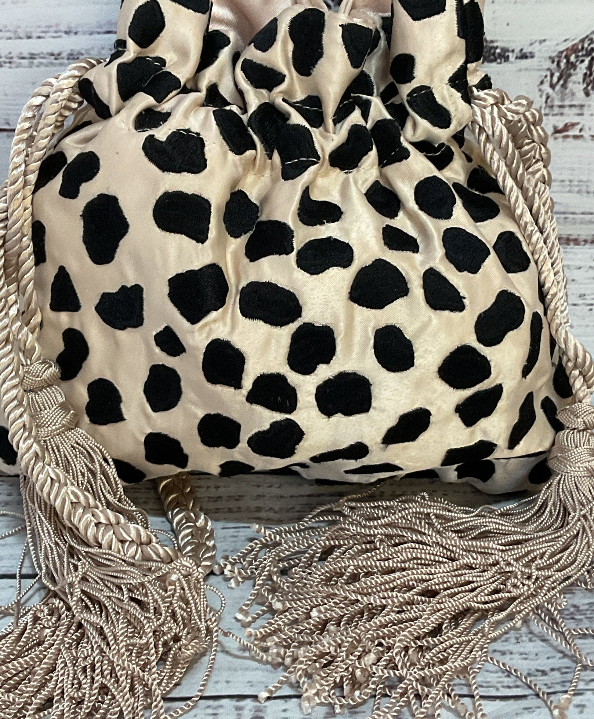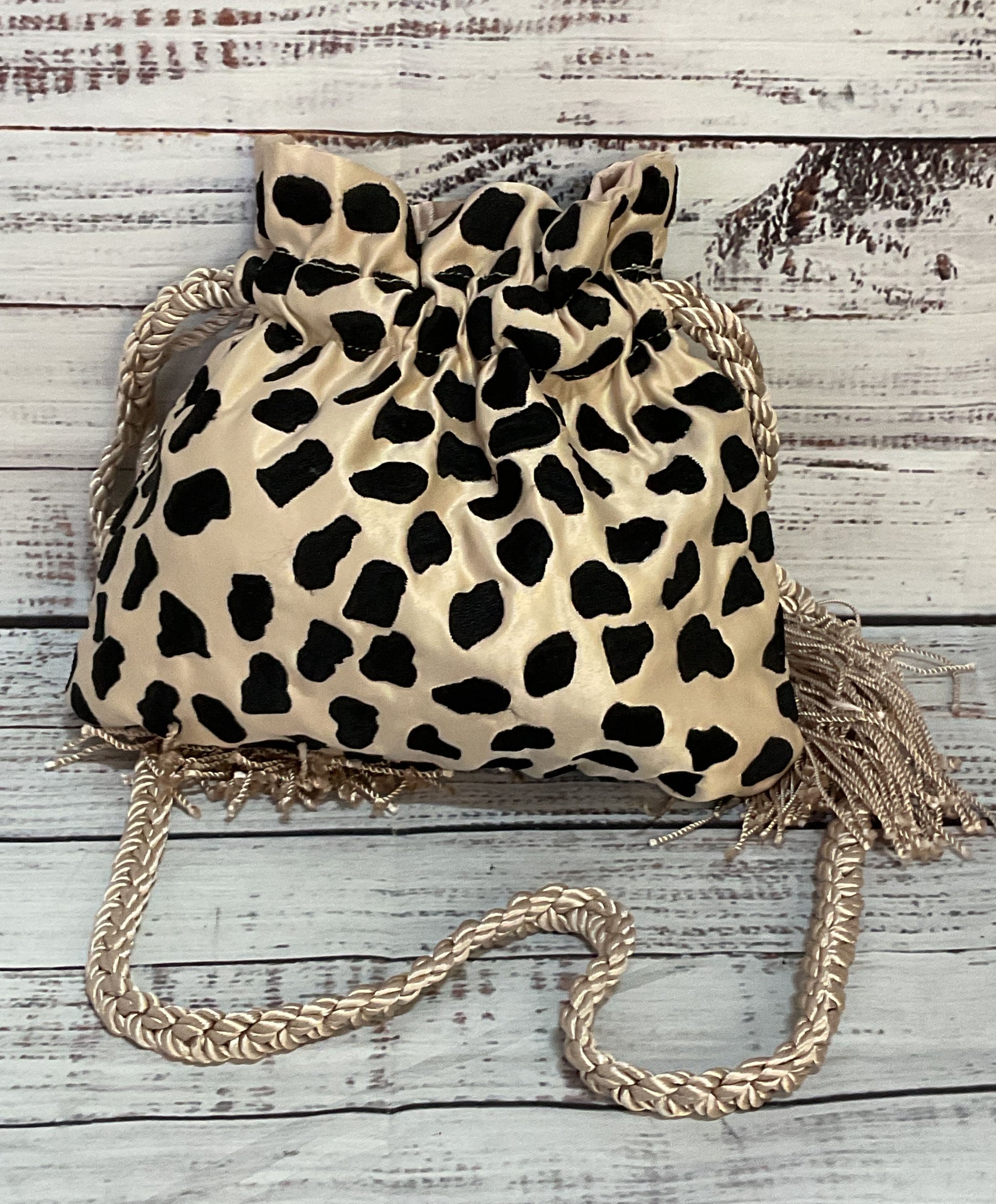 Rebecca De Ravenel Satin Drawstring Tassel Cheetah Print Shoulder Bag Multicolor