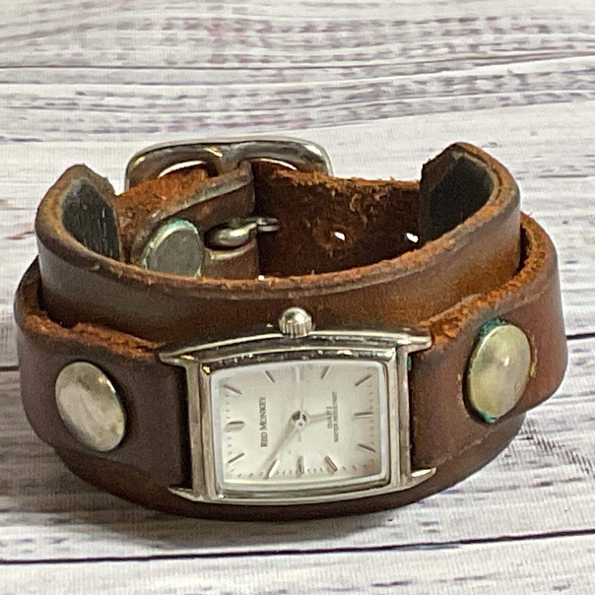 RED MONKEY Designs Women's Brown Leather Wide Band Watch- NEEDS BATTERY