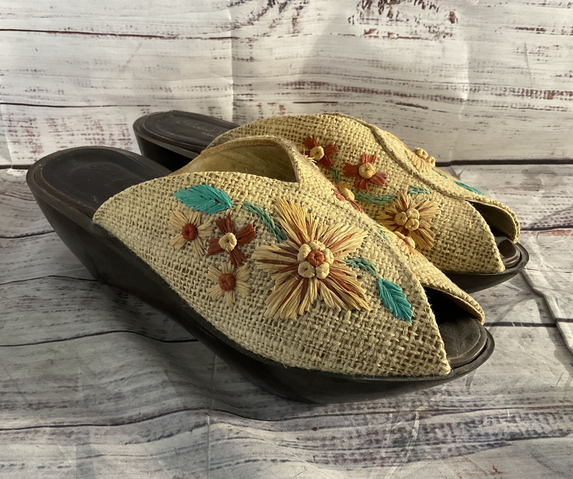 Robert Clergerie Raffia Floral Platform Wedge Sandals Multicolor 7.5