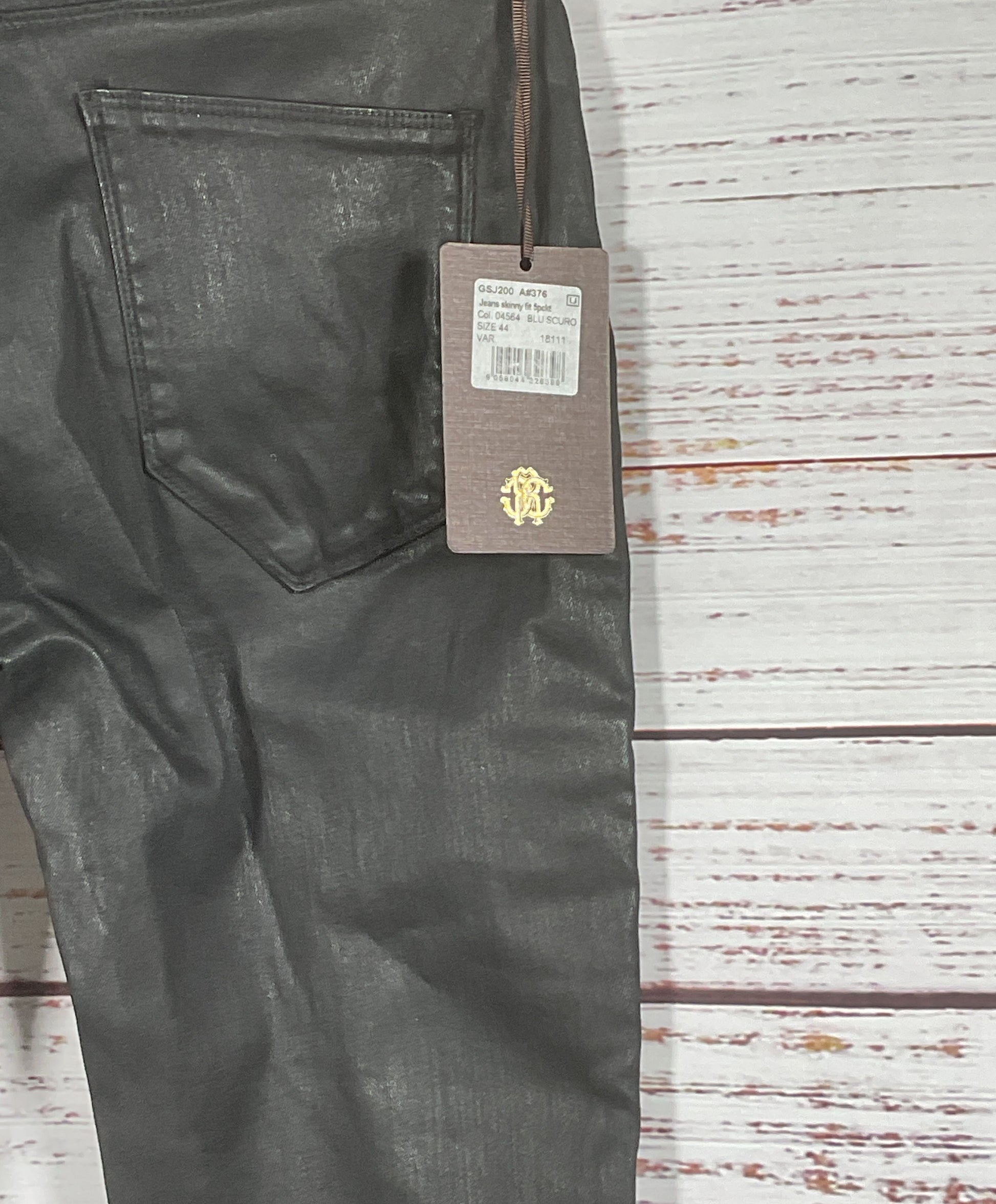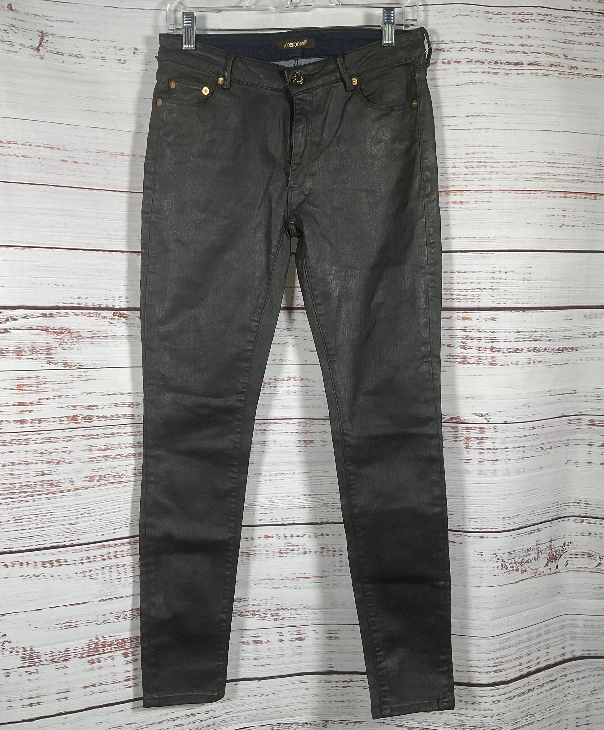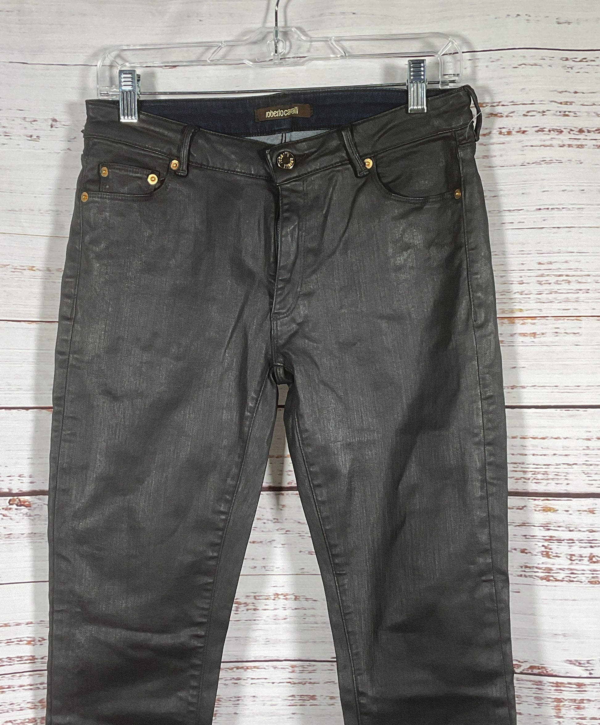 Roberto Cavalli Five Pocket Skinny Fit Coated Black Jeans 44