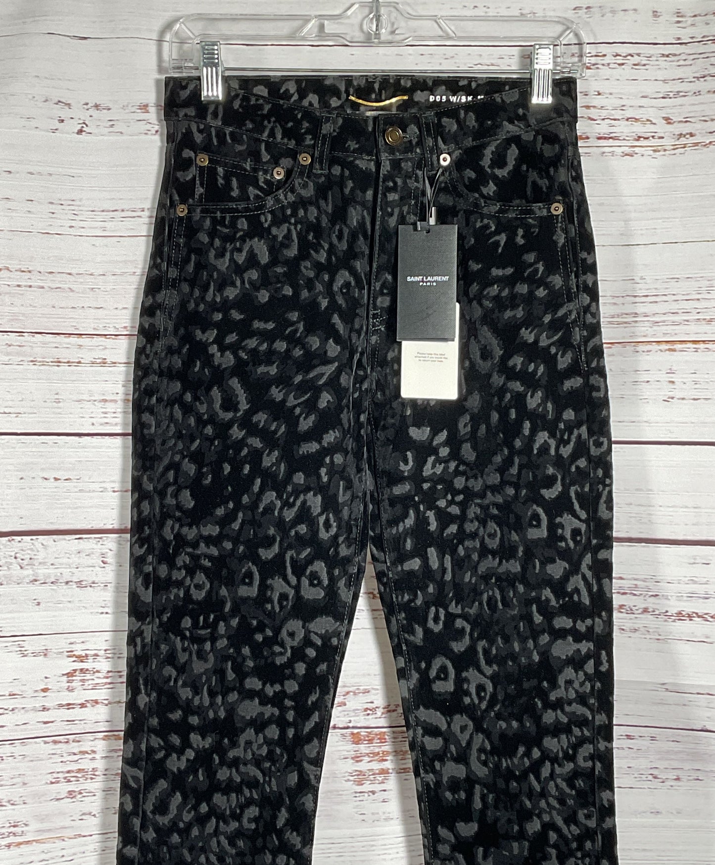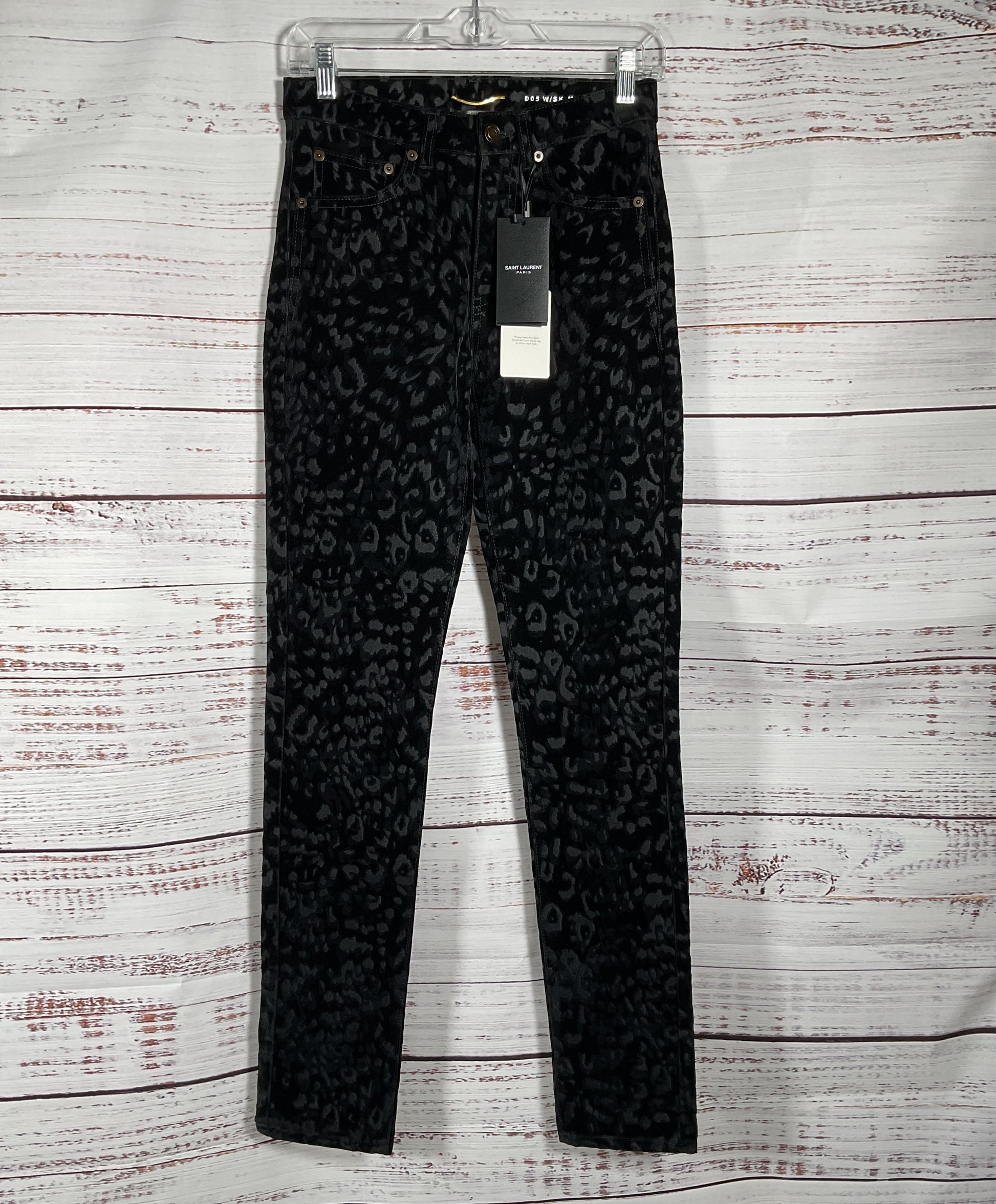 Saint Laurent Leopard Velvet Skinny Jeans Black 25