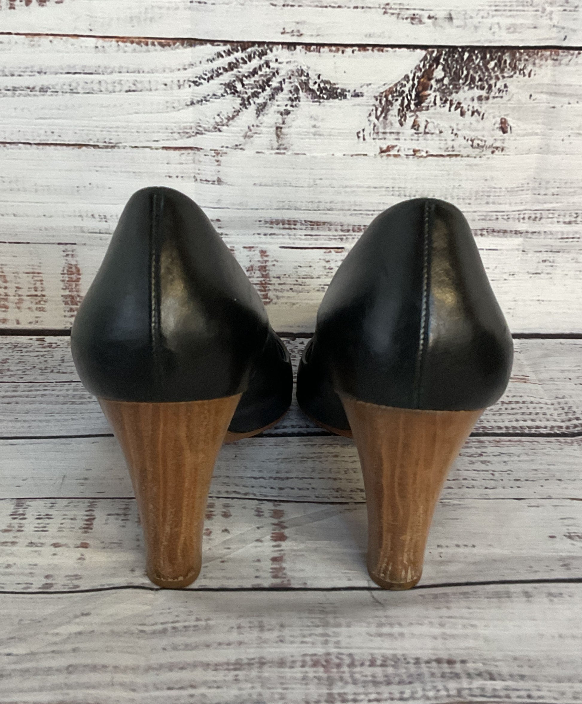 Salvatore Ferragamo Leather Criss Cross Wood Heel Pumps Black 7
