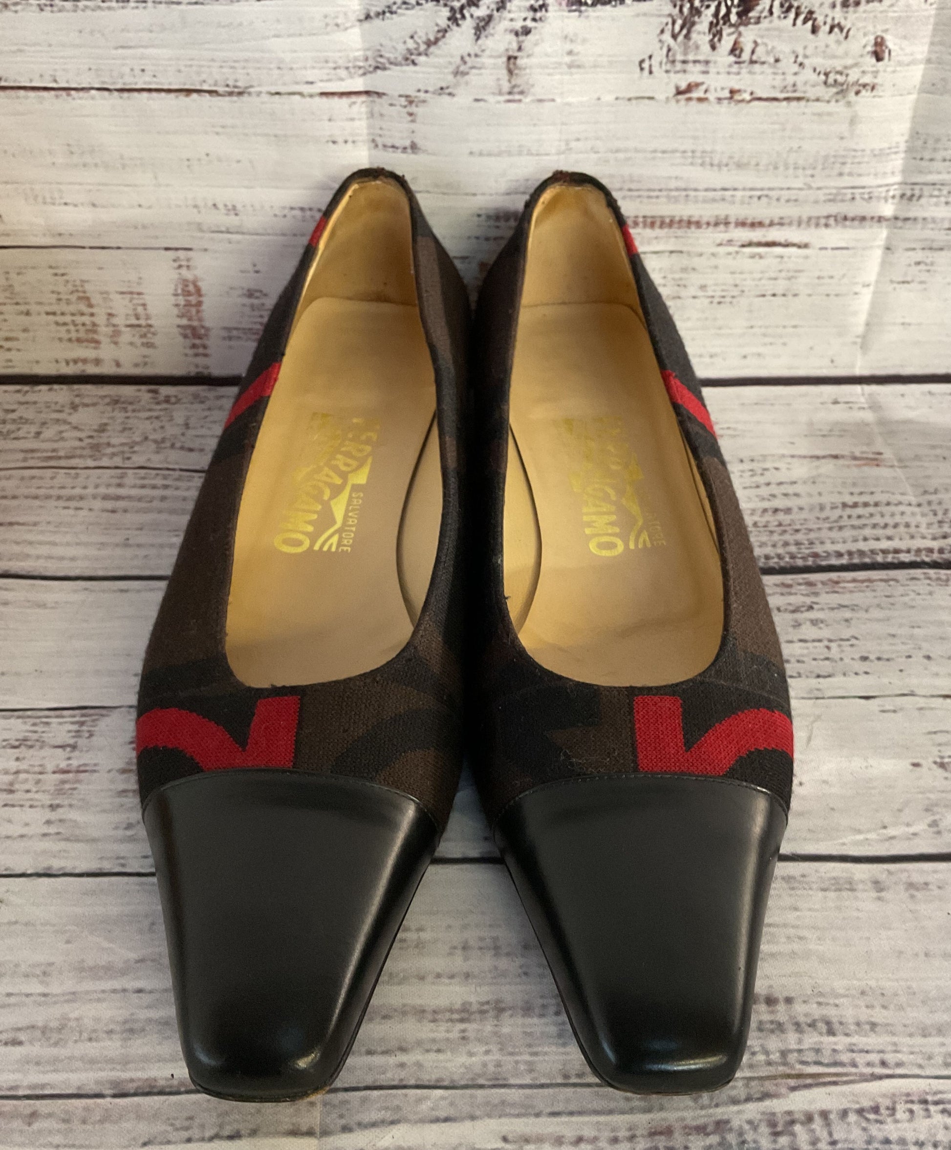 Salvatore Ferragamo Square Toe Logo Pattern Pump Heels Multicolor 8