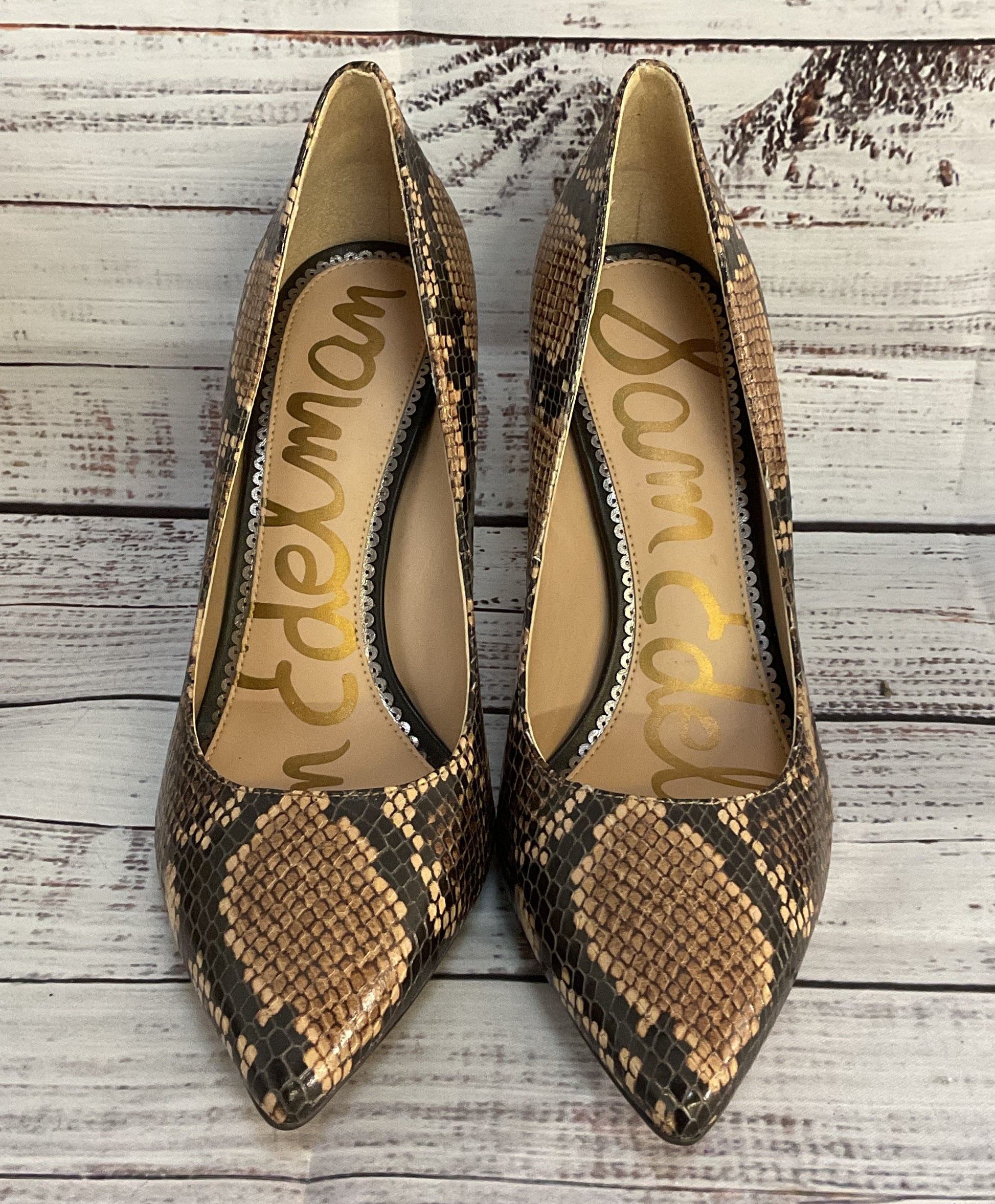 Sam Edelman Leather Hazel Snakeskin Embossed Heels Brown 8