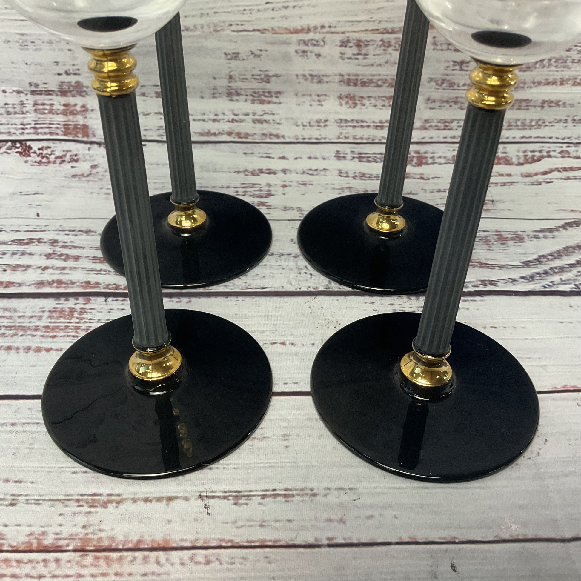 Type: Water/wine Glasses Black Stem Base Gold Accents Set Of 4 1/3