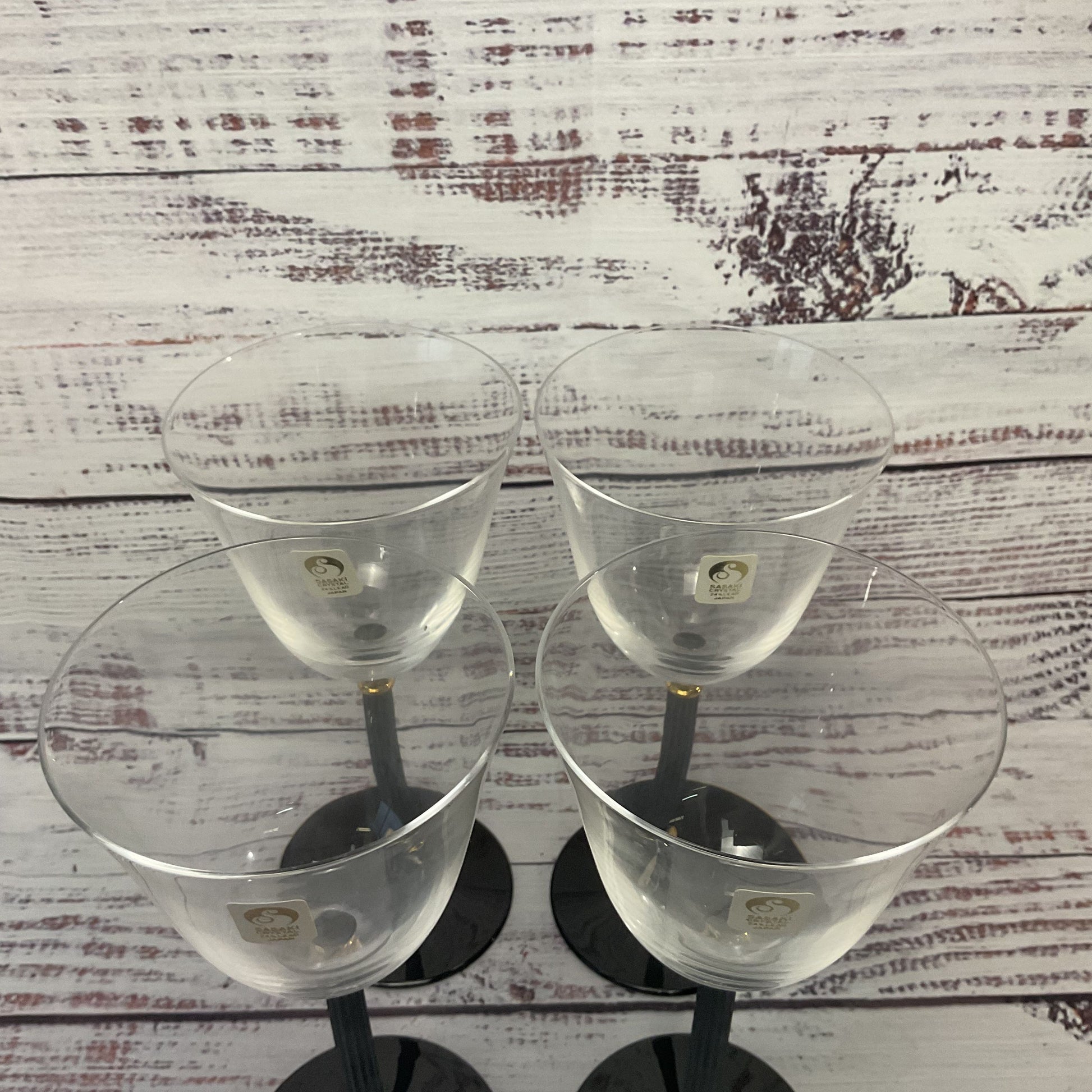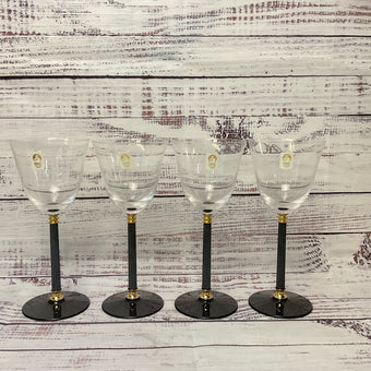 Sasaki Water/wine Glasses Black Stem Base Gold Accents Set Of 4 3/3