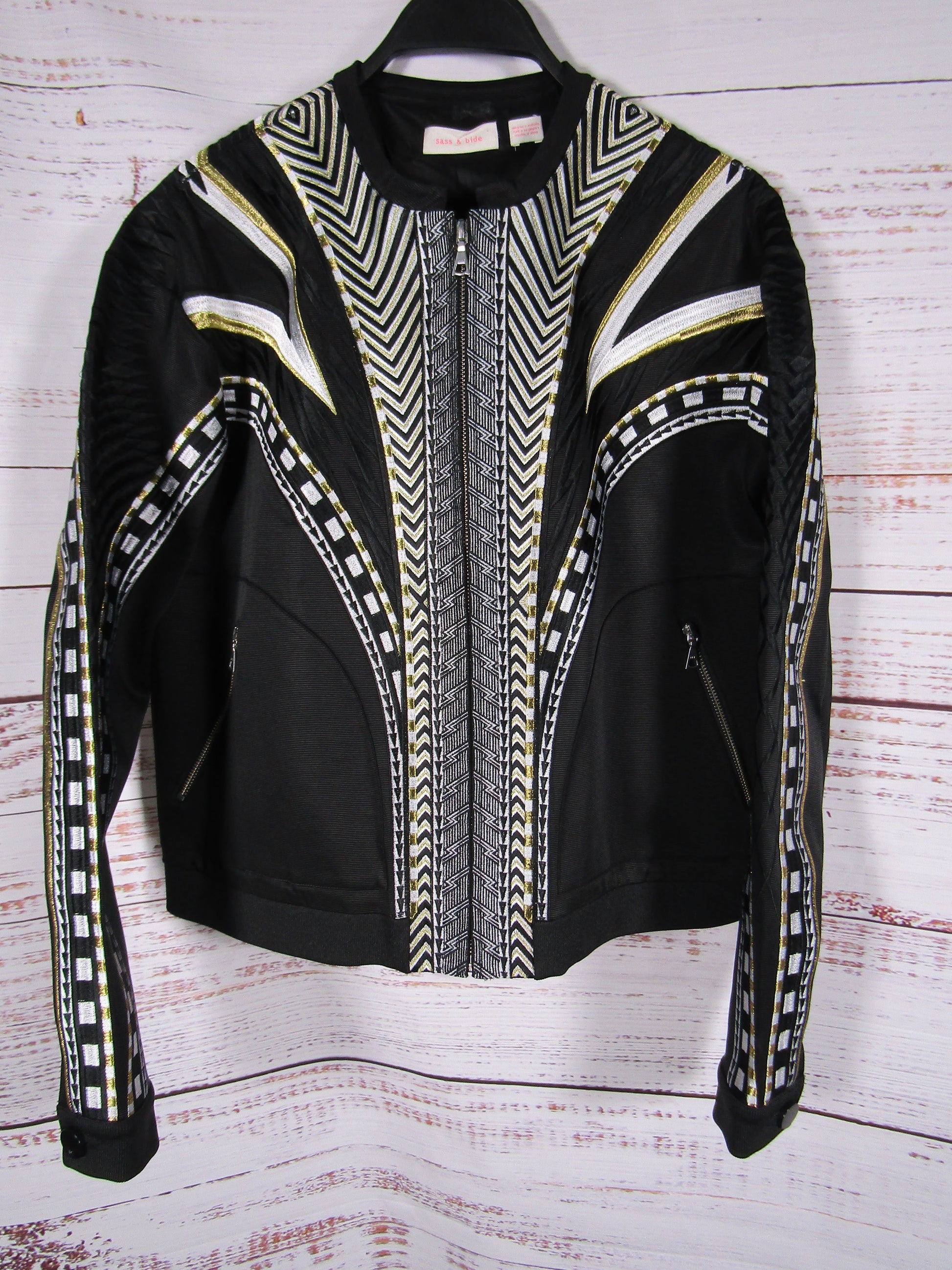 Sass & Bide Voodoo Kink Women's Black Embroidered Bomber Jacket Size 10