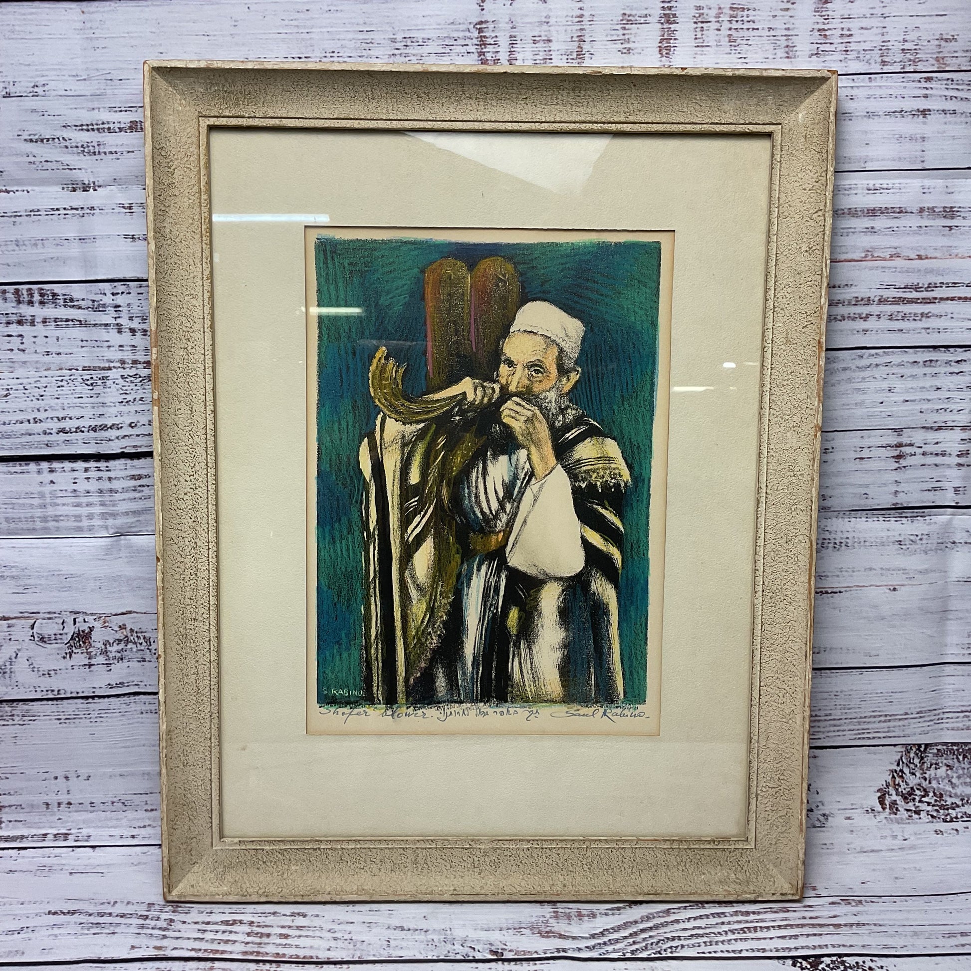 Description: Shofar Blower Print by Saul Rabino Signed.