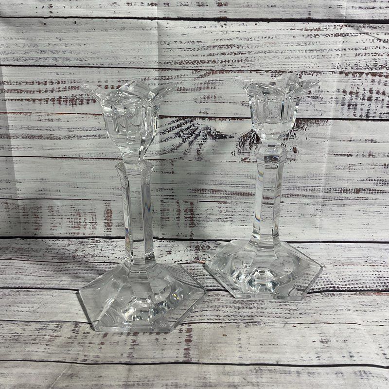 Type: Set Of 2 Orrefors Lily Flower Crystal Glass Candle Sticks