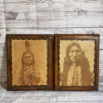 Set of 2 VTG. Chief Low Dog Lakota Oglala Sioux Prints on Wood Frames