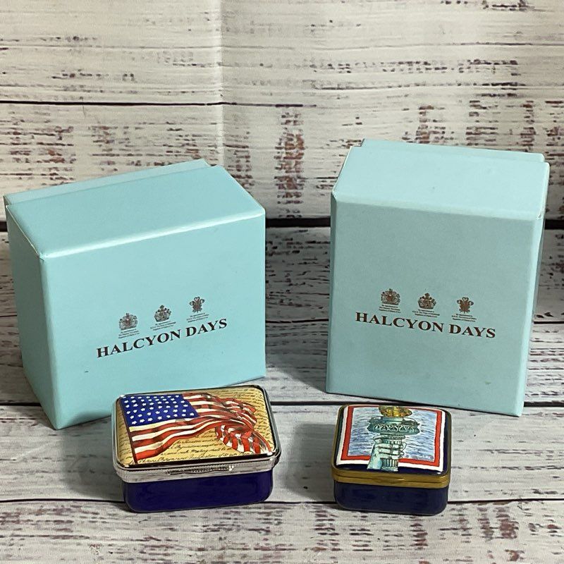 Set of 2 VTG. HALCYON DAYS American Flag and Statue of Liberty Trinket Boxes