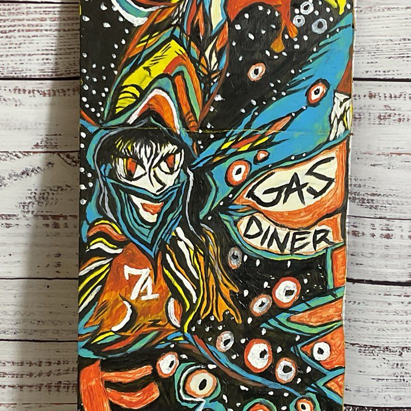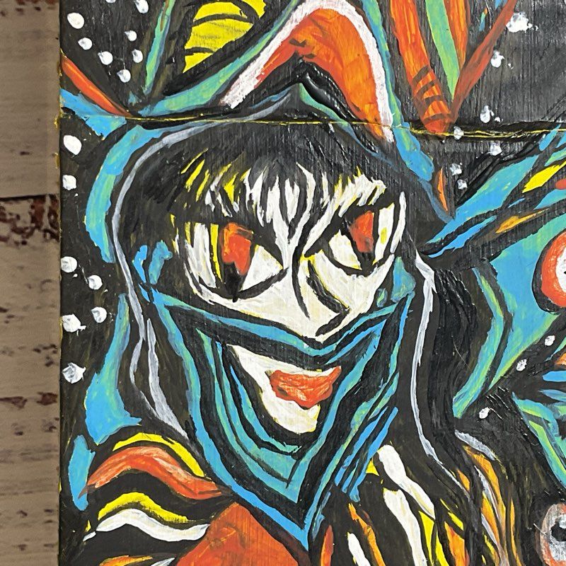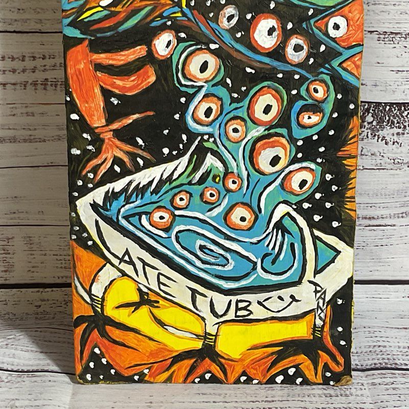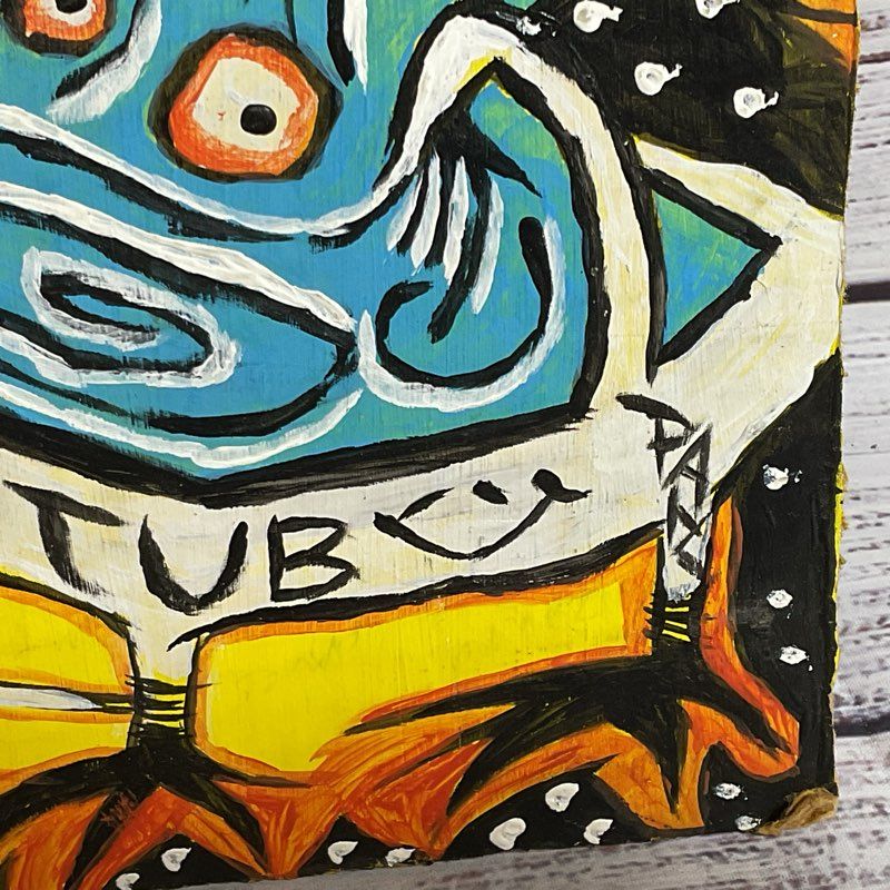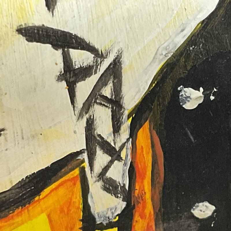 Description: Signed Abstract Painting on Piece of Carboard PAINTING Signed.