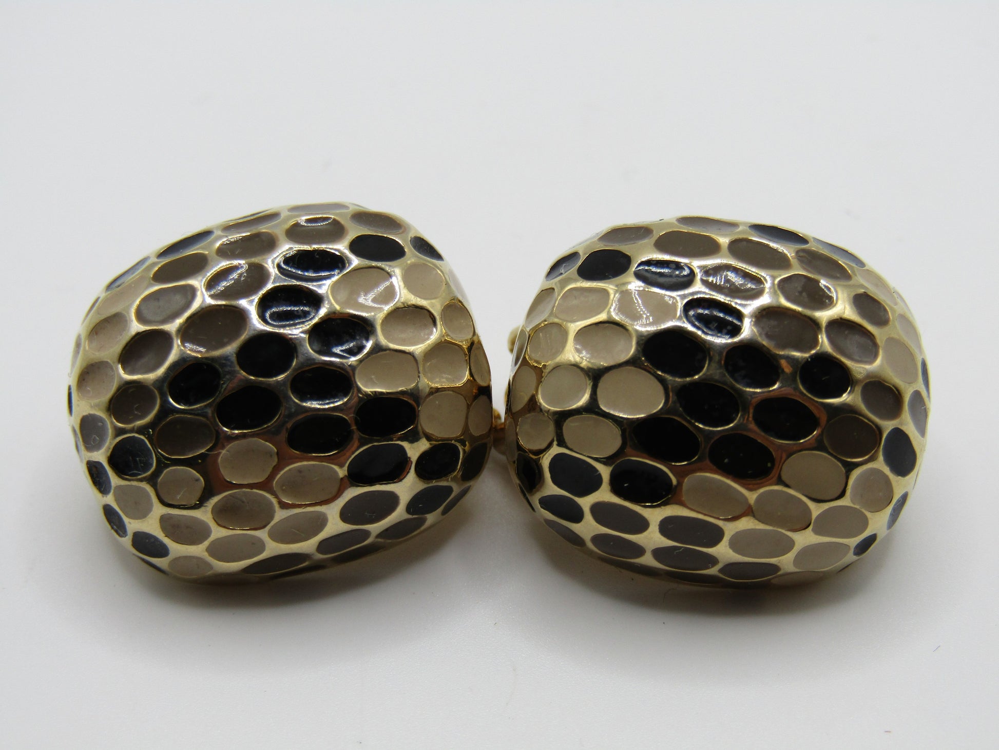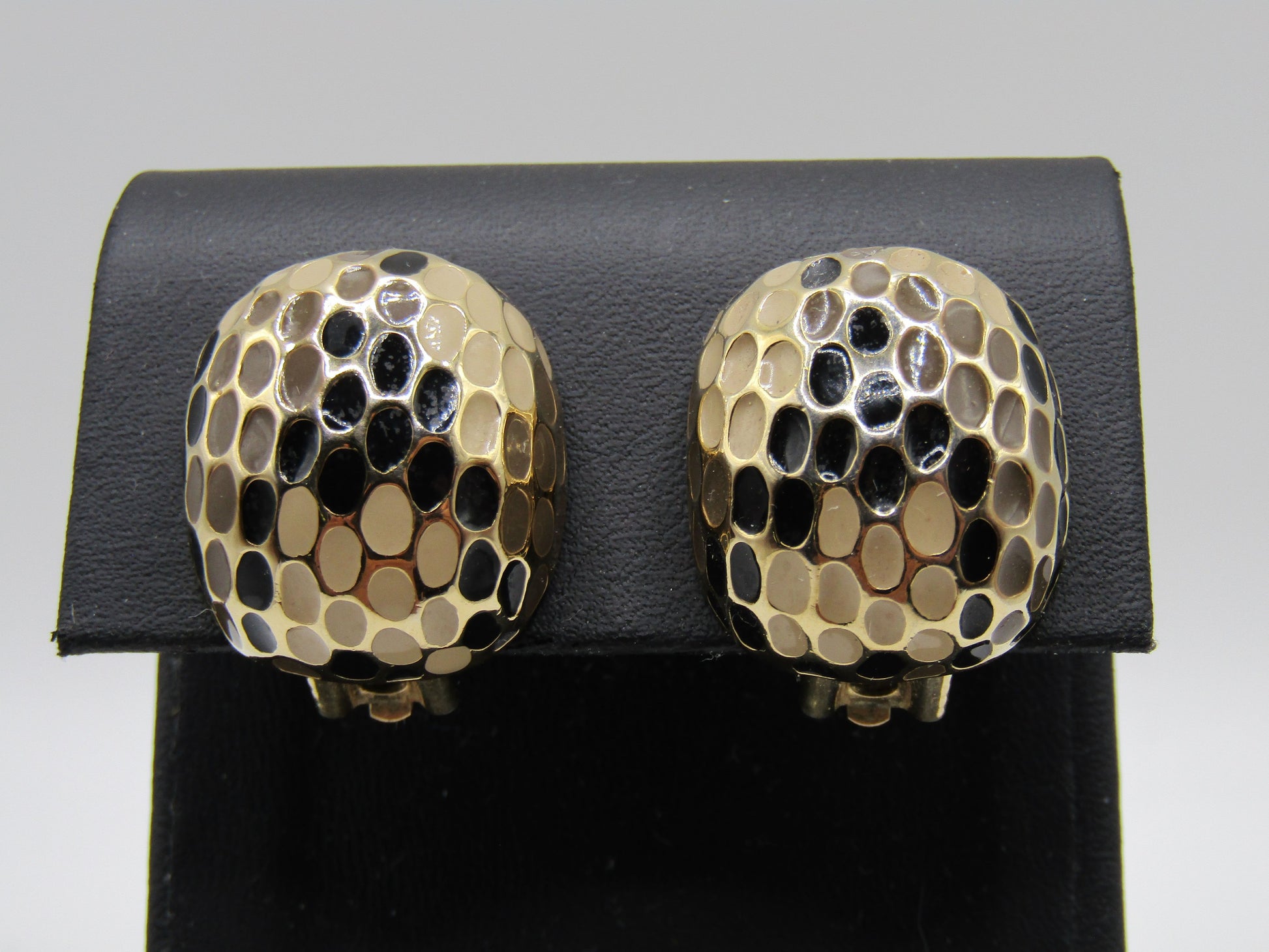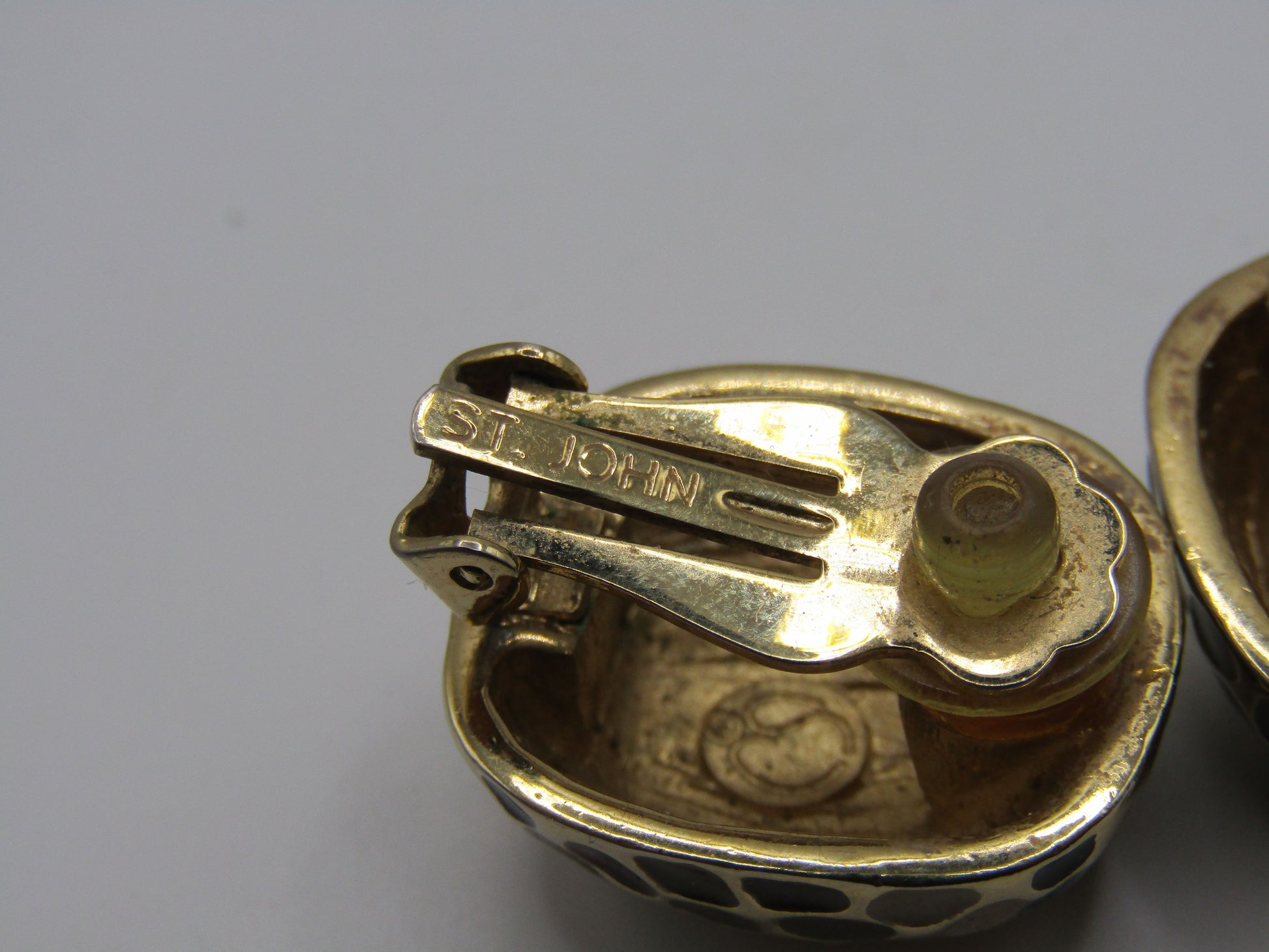 St. John Gold Plated Enamel Snake Print Clip-On Stud Earrings