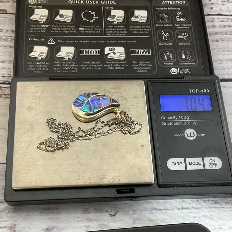 STARBORN Sterling Abalone Inlay 1.5" Swan Pendant 17" Chain Necklace- 7.04g