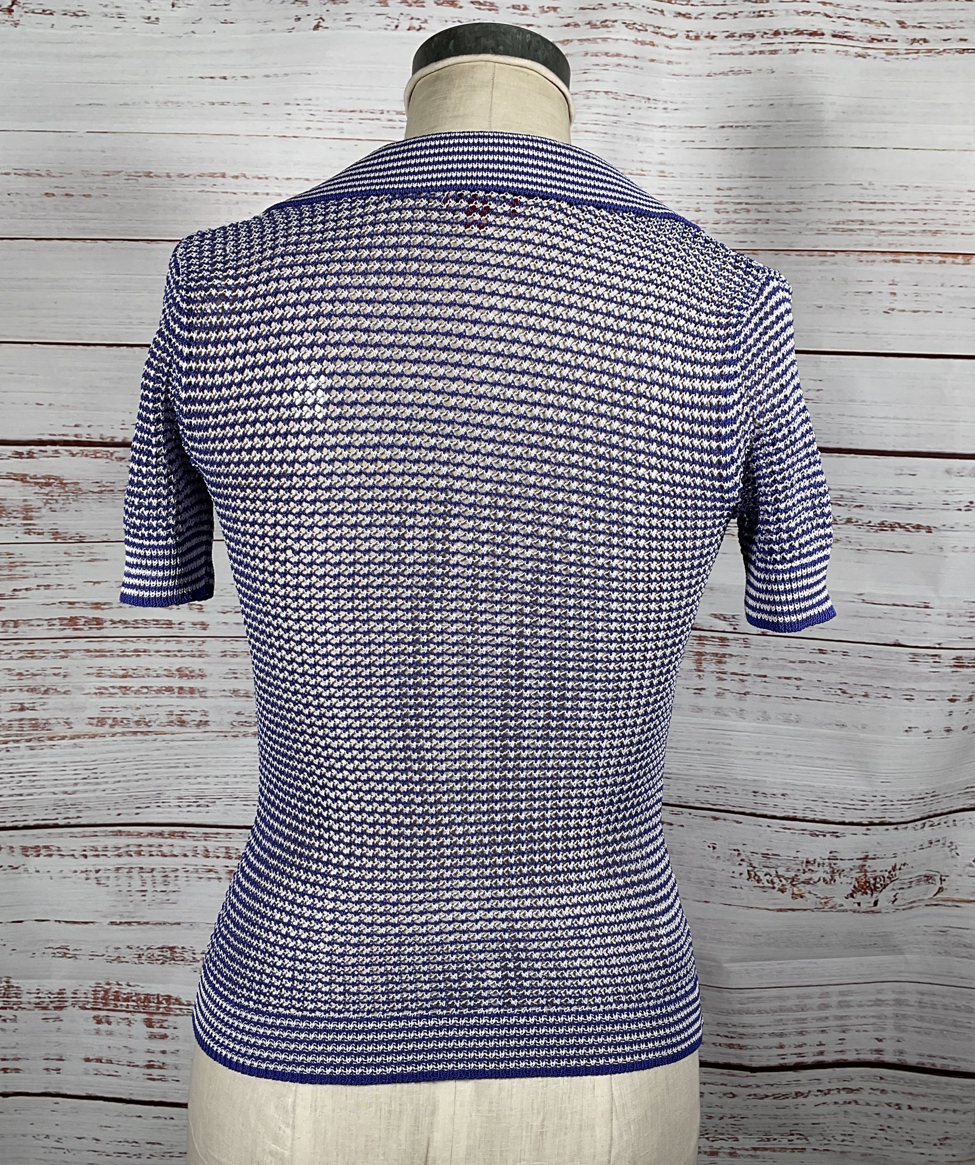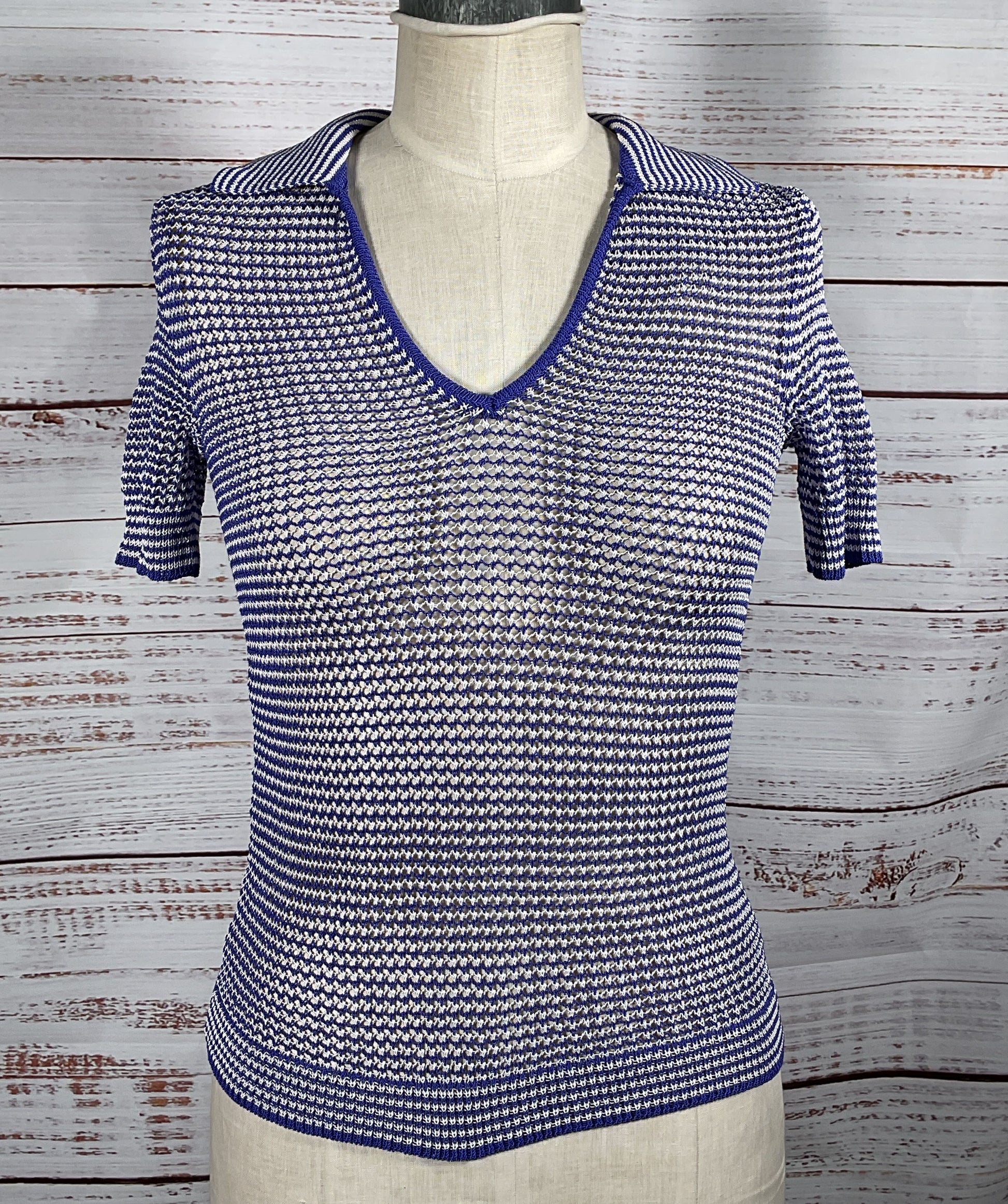 Staud Open Knit Polo Shirt Blue S
