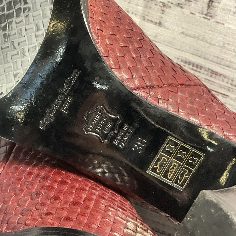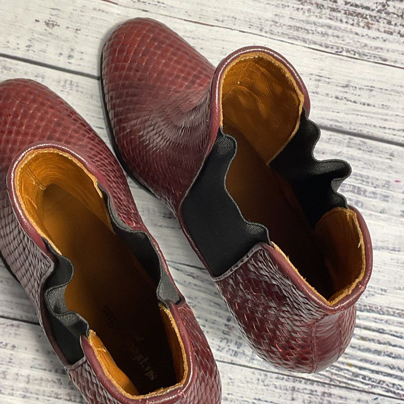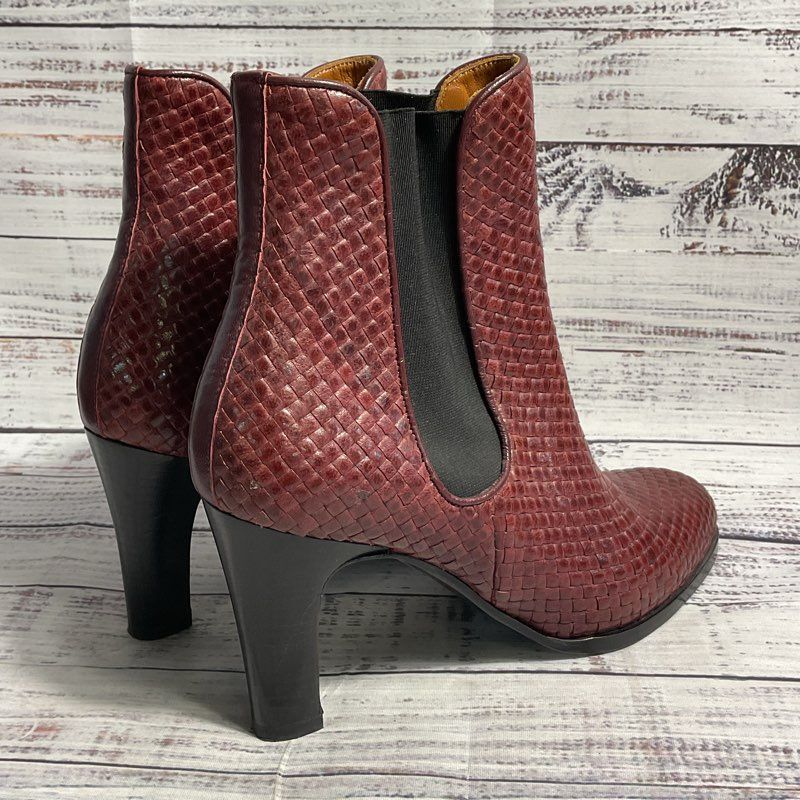 Stephane Kelian Burgundy Woven Leather Pump Heel Ankle Boot Women's 7.5 US/38 EU