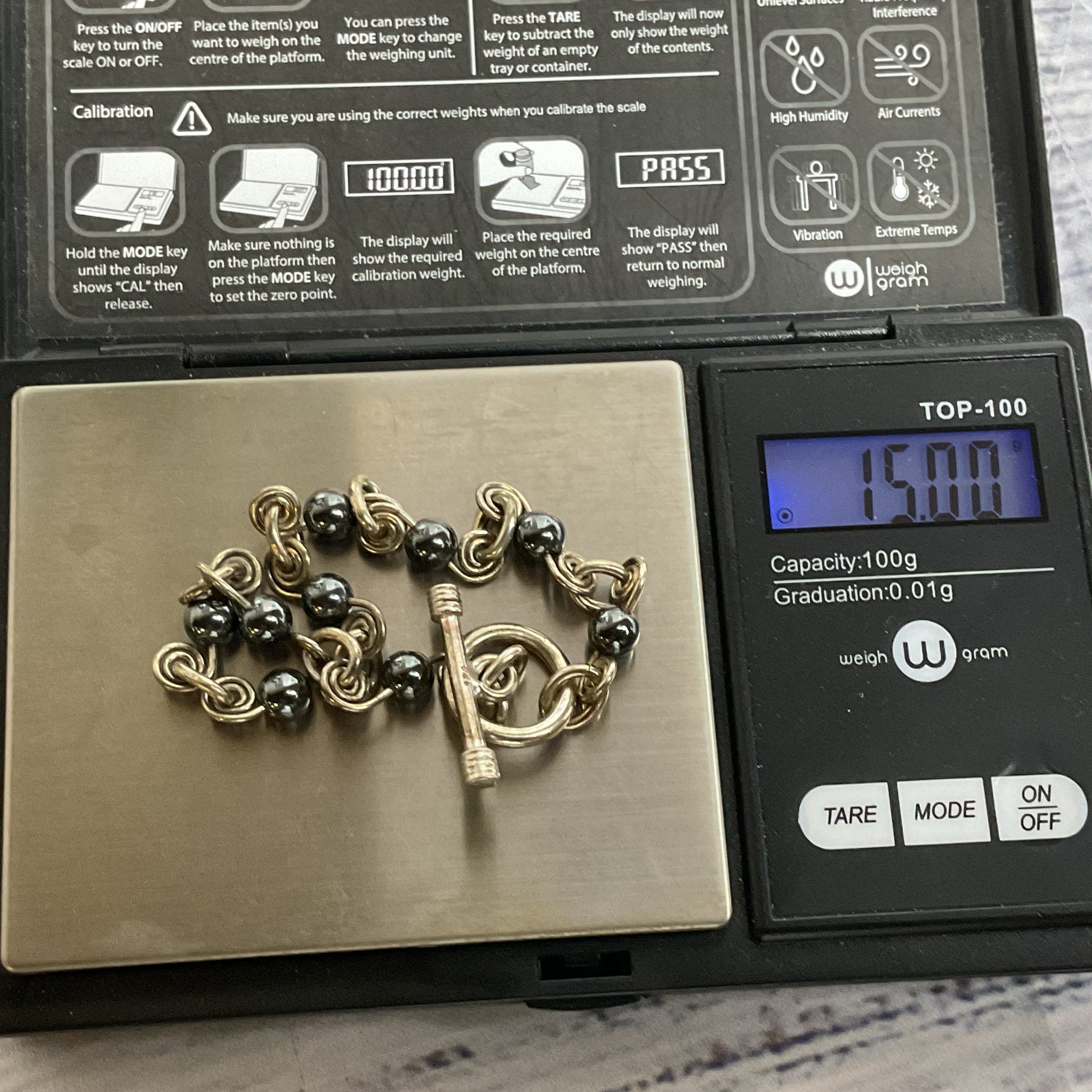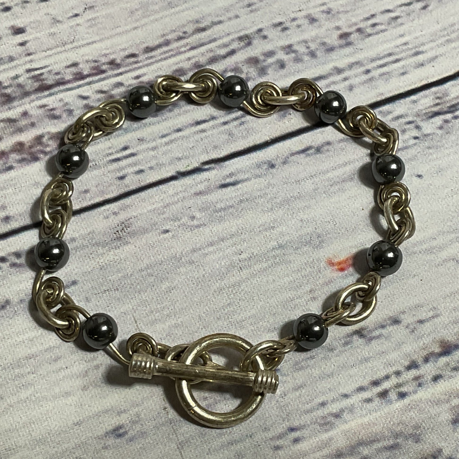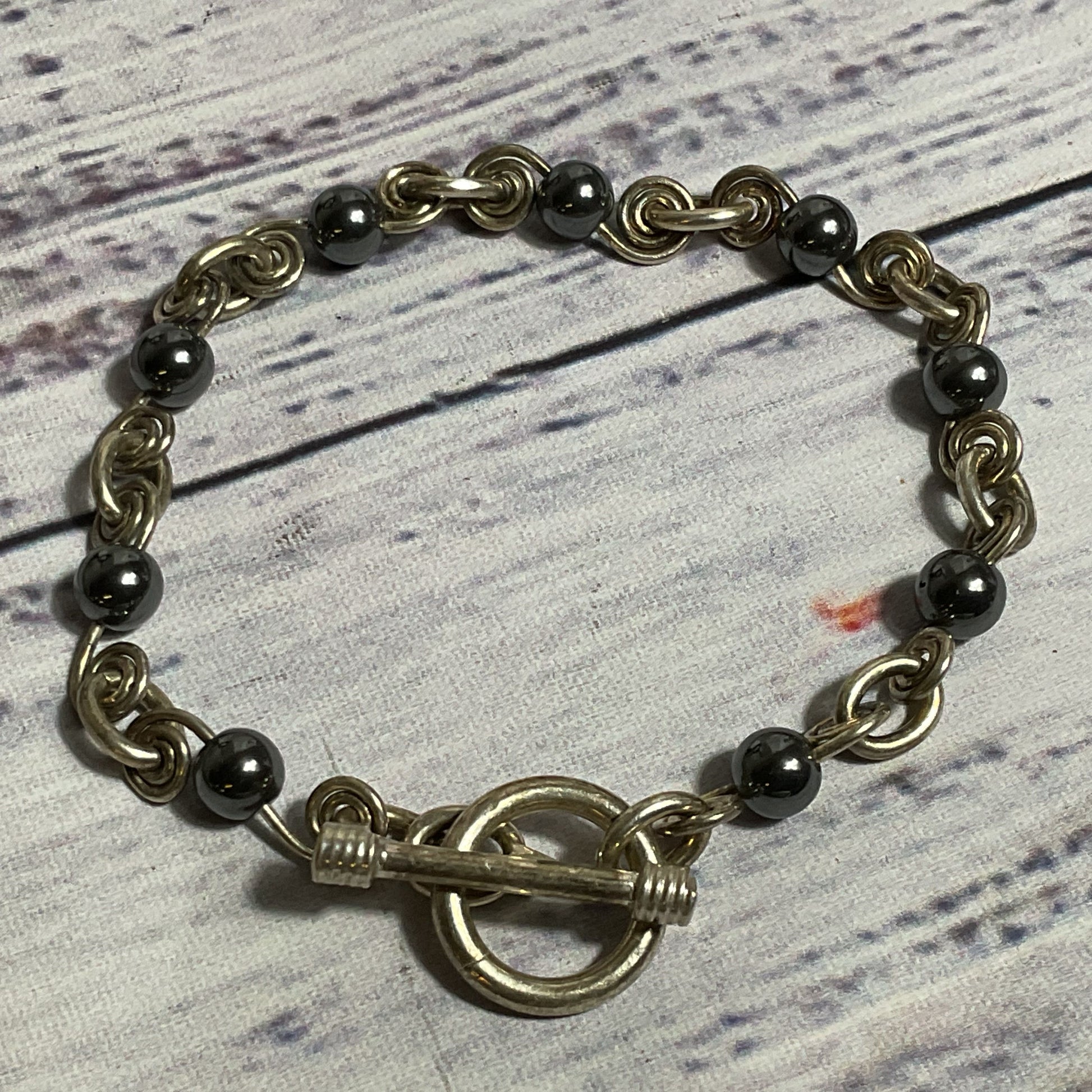 Sterling Silver & Hematite Beaded 7.5" Bracelet- 15.0g