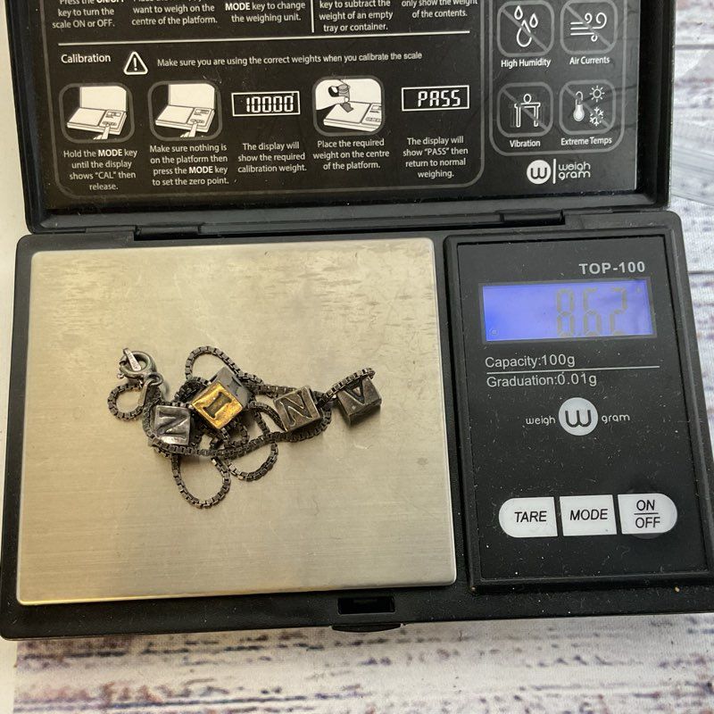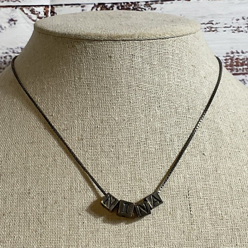 Sterling Silver "NINA" Block Beads 16" Chain Necklace- 8.62g
