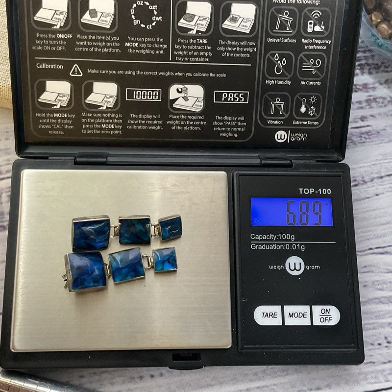 Sterling Silver & Resin Dangle Linked 1.5" Earrings- 6.89g