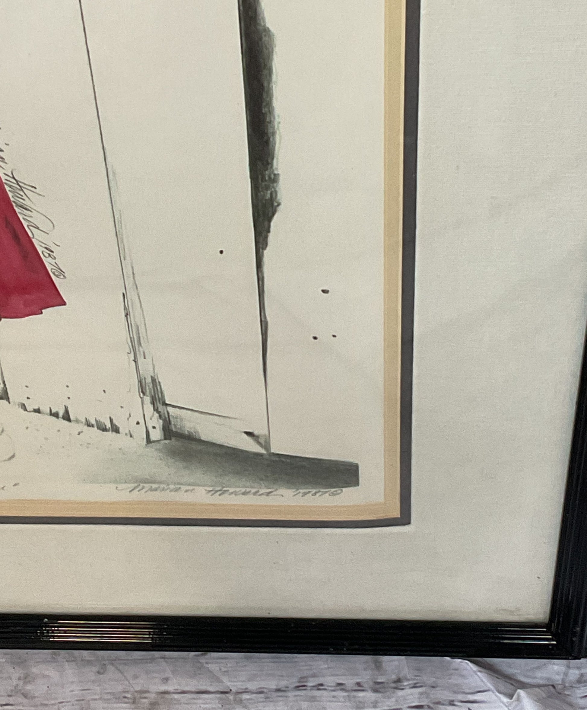 Description: Sunday Morn Drawing by Marion Howard Signed. Framed
