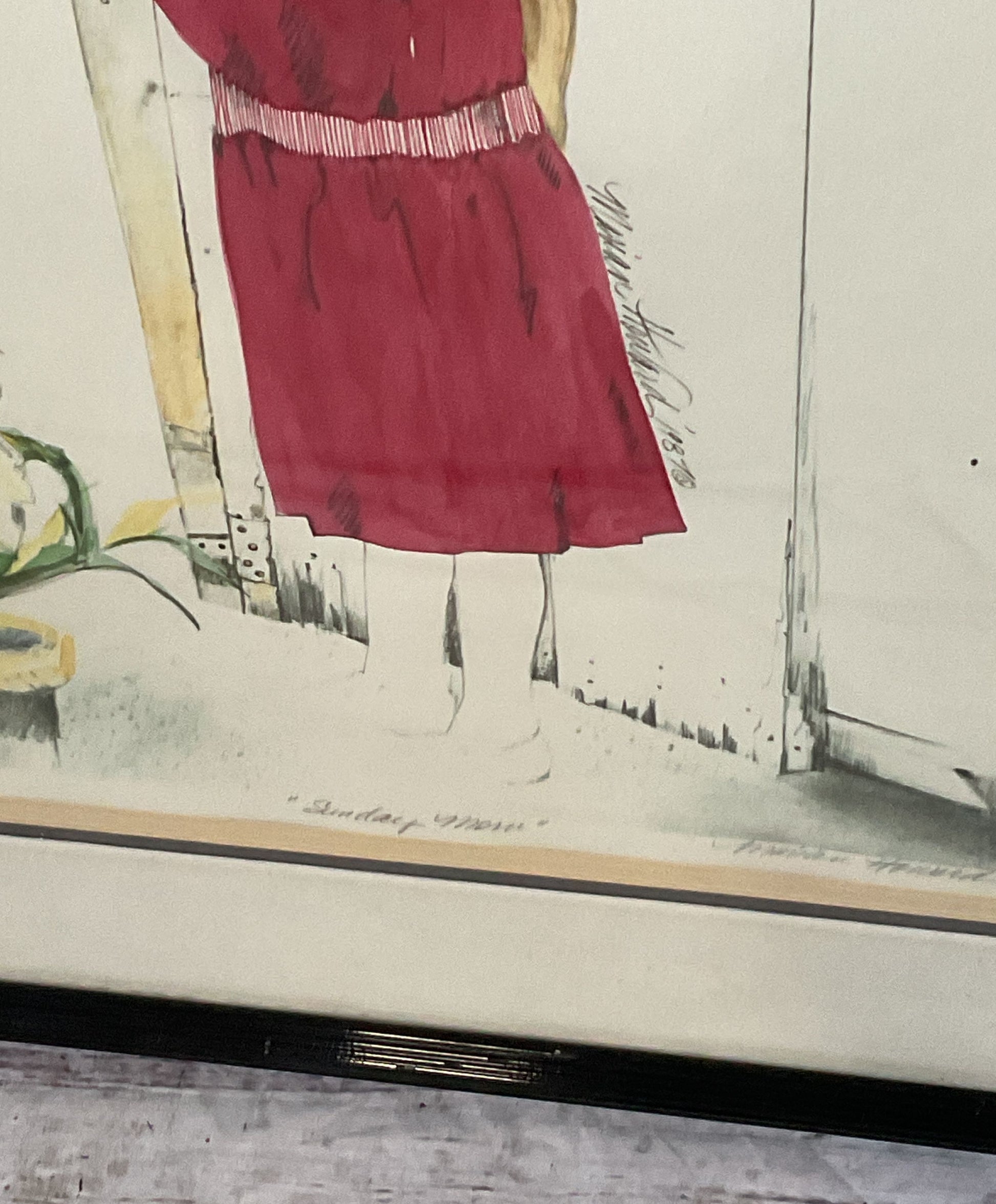 Sunday Morn Framed Drawing Signed by Marion Howard