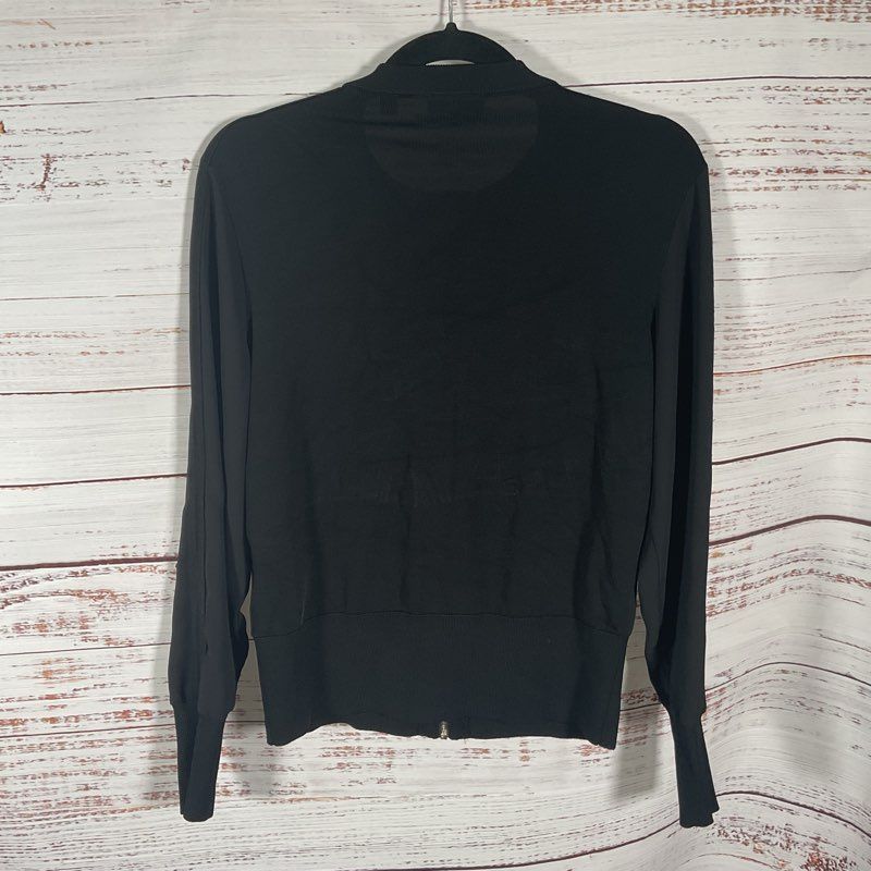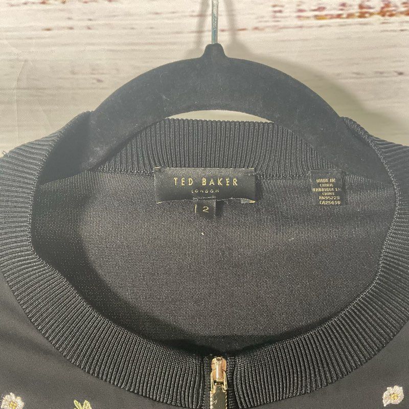 Ted Baker Black Floral Embroidered Full Zip Cardigan Bomber Jacket - Size 2