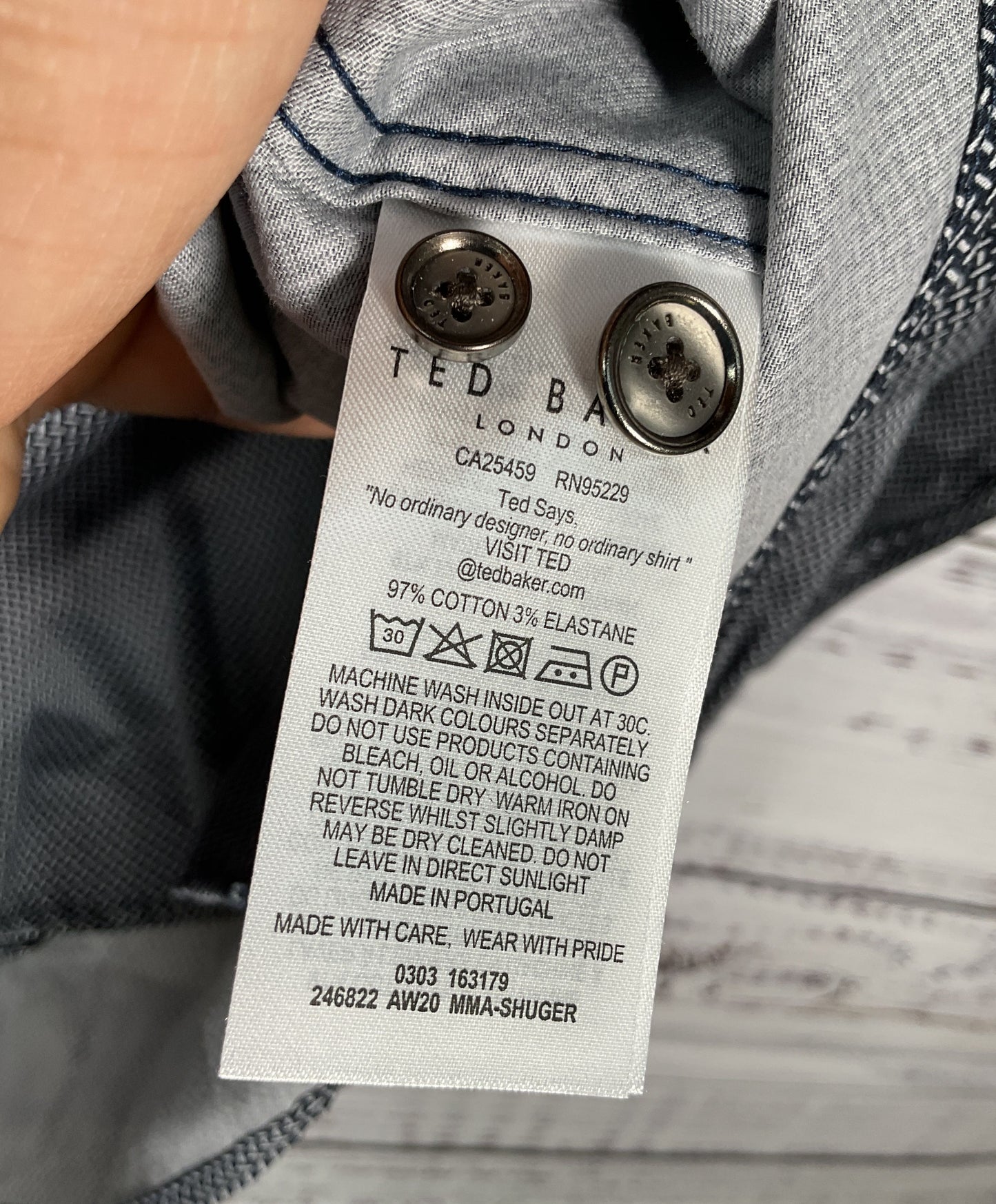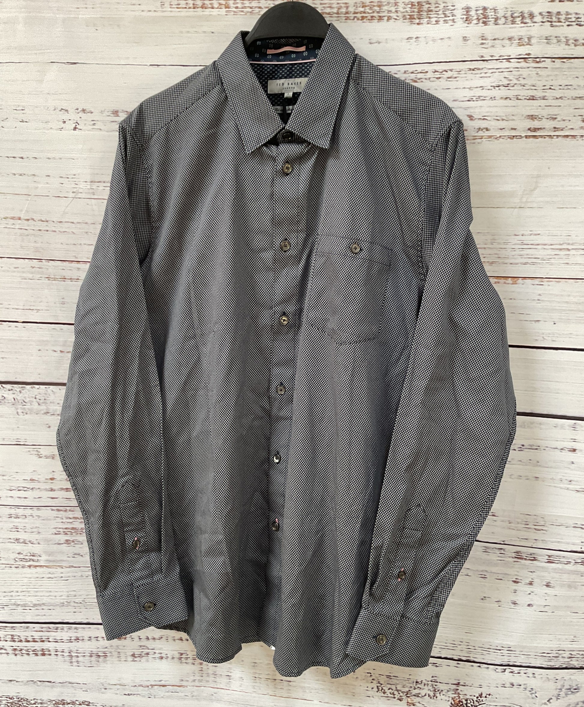 Ted Baker Men's Gray Cotton Blend Button Down Slim Fit Shirt Size L