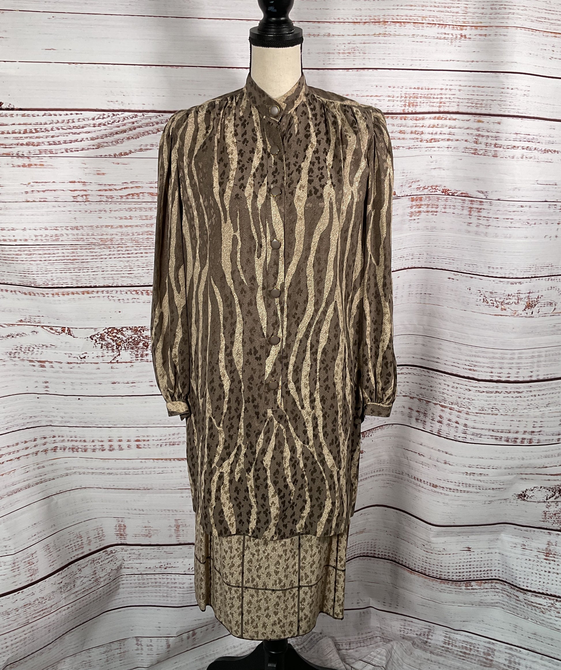 Ted Lapidus Vintage Animal Print Top & Skirt Set Beige