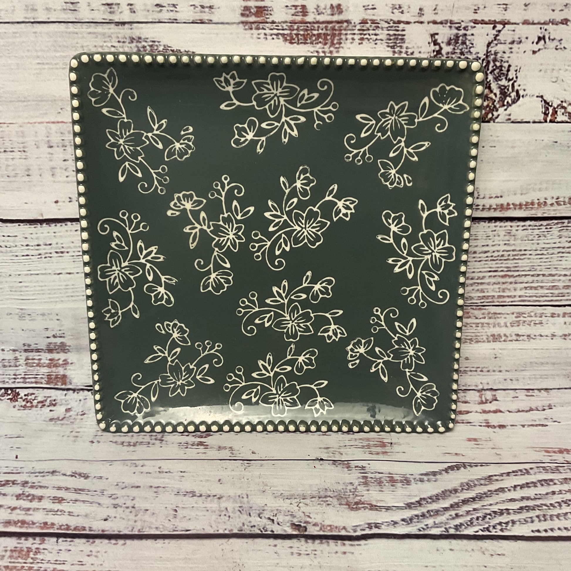 Type: Green Grey Floral Lace Square Dish 8.5"